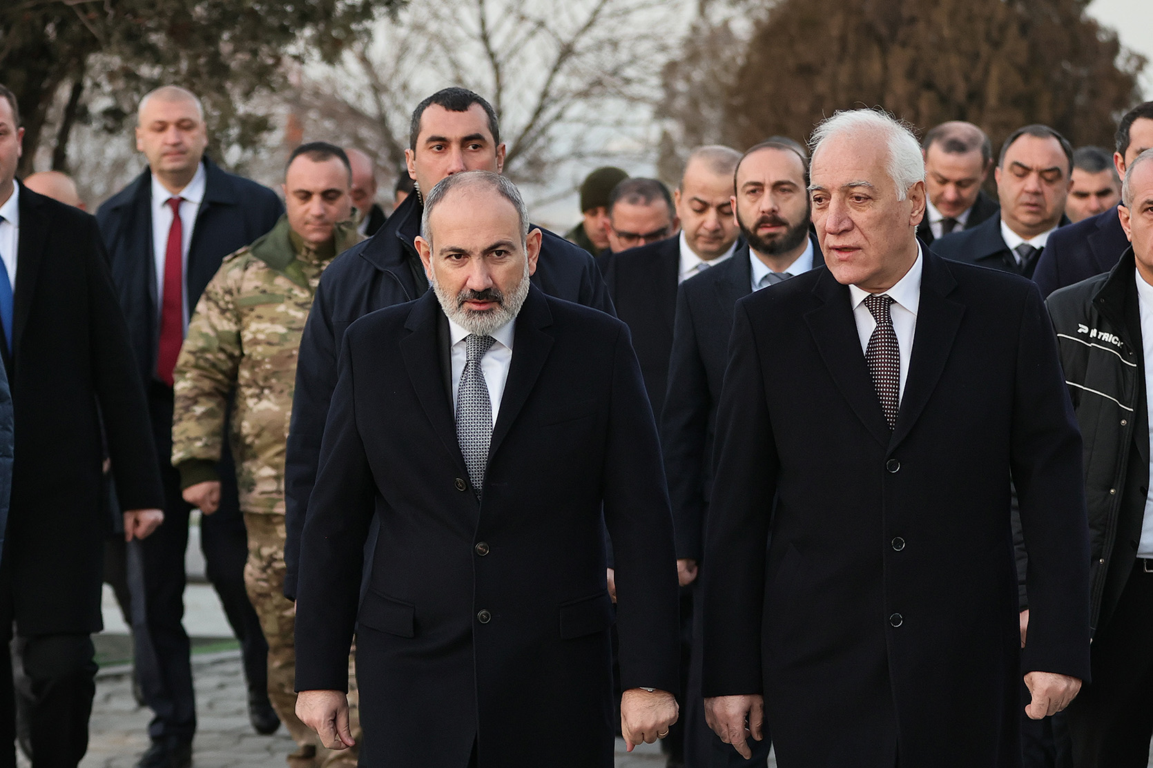 Վարչապետ Նիկոլ Փաշինյանը ՀՀ նախագահ Վահագն Խաչատուրյանի հետ Հանրապետության բարձրագույն ղեկավարության ուղեկցությամբ այցելել է «Եռաբլուր» զինվորական պանթեոն: