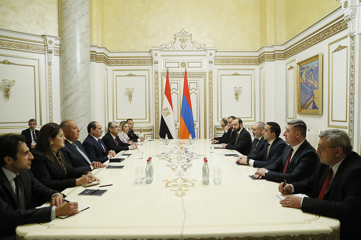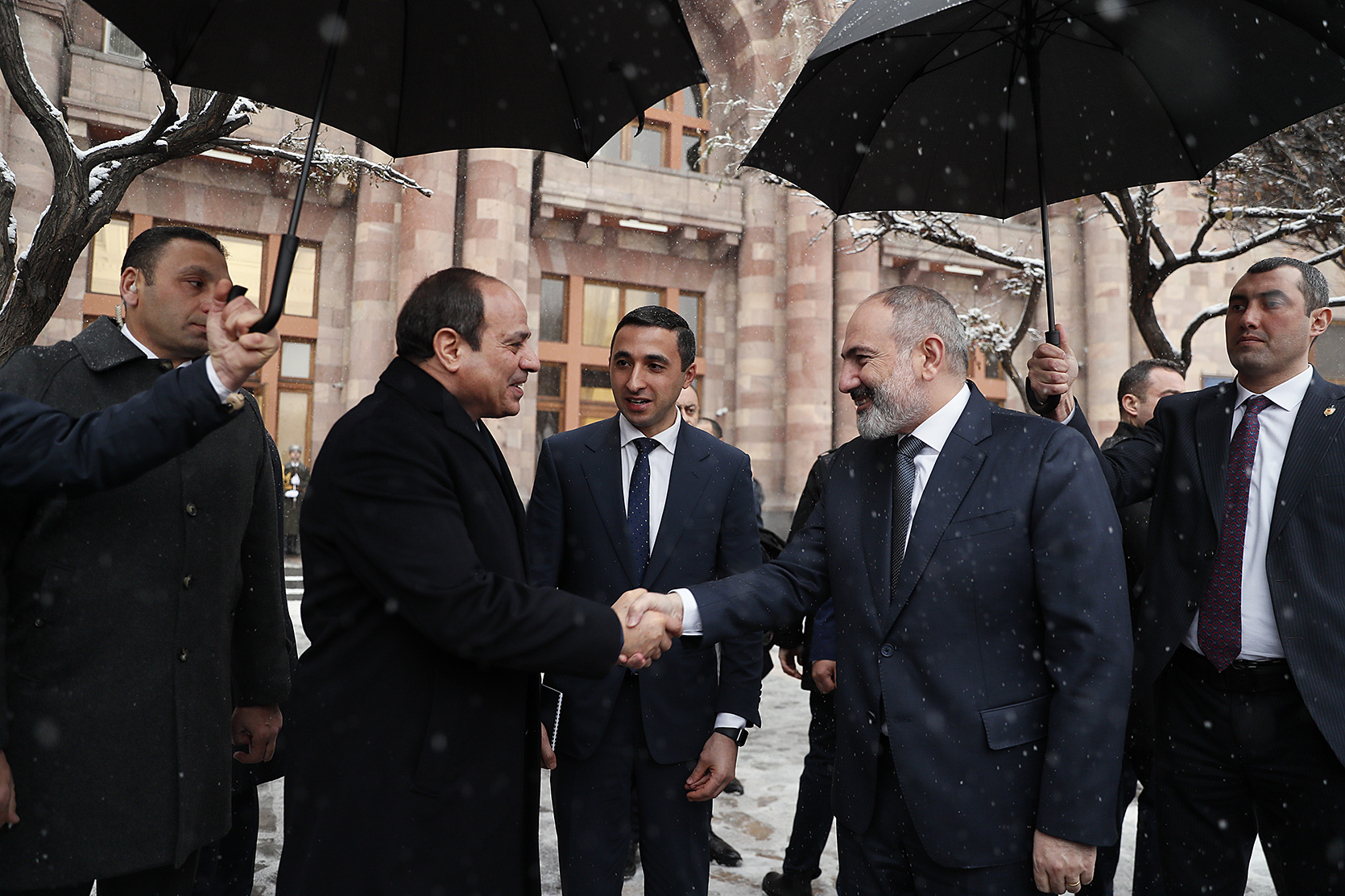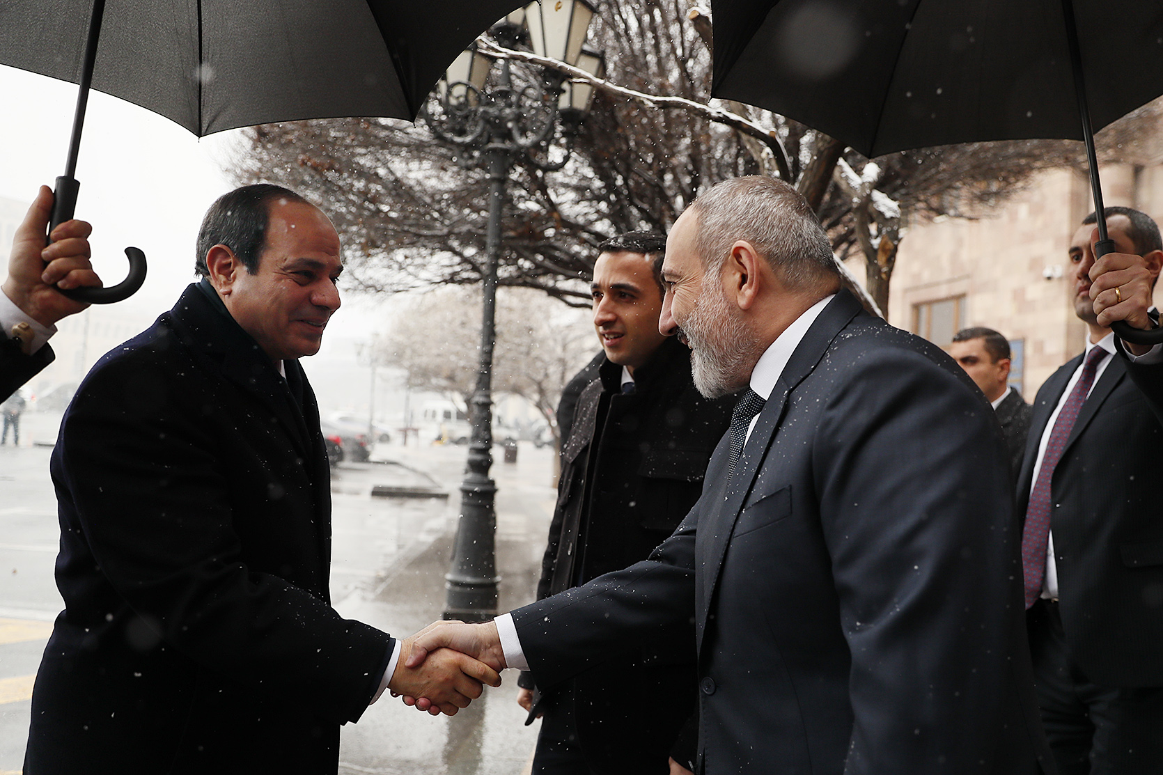 Վարչապետ Նիկոլ Փաշինյանը կառավարությունում հյուրընկալել է պաշտոնական այցով Հայաստան ժամանած Եգիպտոսի նախագահ Աբդել Ֆաթթահ Ալ-Սիսիին: Նախ տեղի է ունեցել Հայաստանի և Եգիպտոսի առաջնորդների առանձնազրույցը, այնուհետև բանակցությունները շարունակվել են ընդլայնված կազմերով: