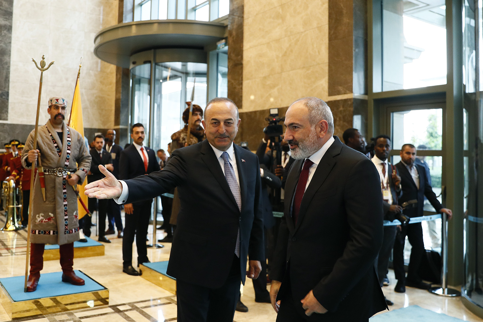 Նախագահական համալիրում վարչապետ Փաշինյանին դիմավորել է Թուրքիայի արտաքին գործերի նախարար Մևլութ Չավուշօղլուն: