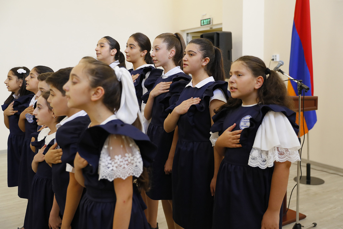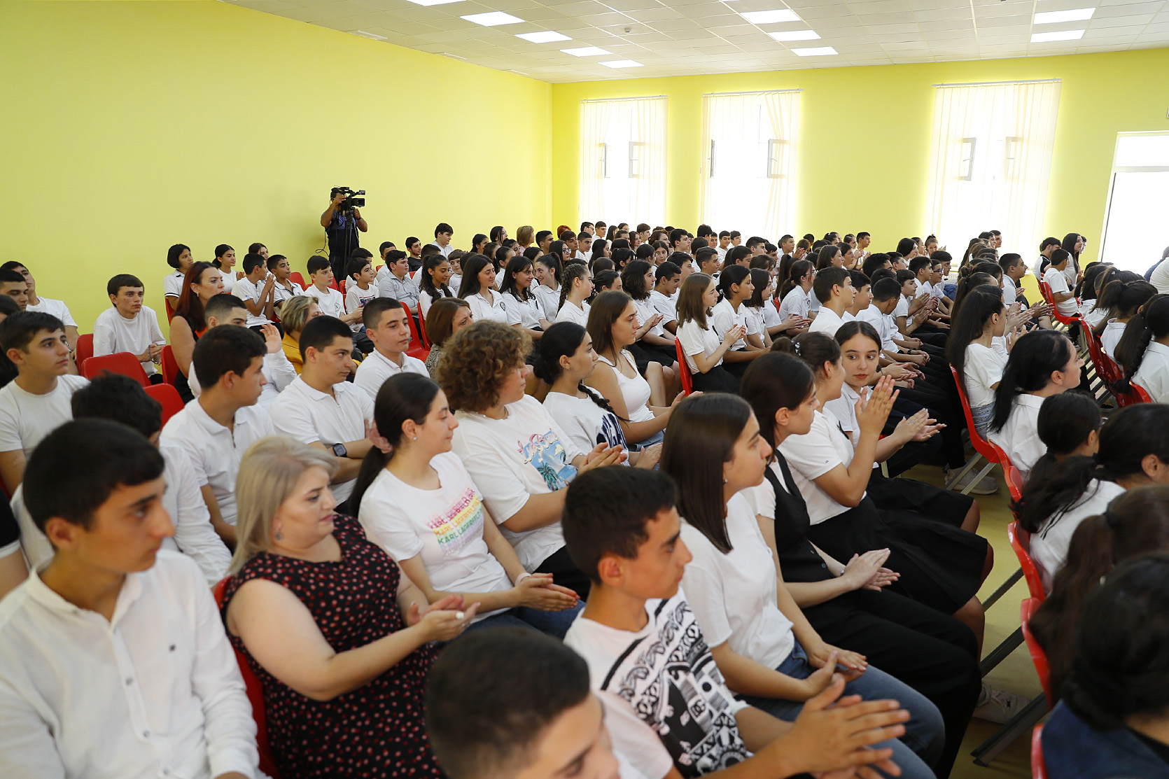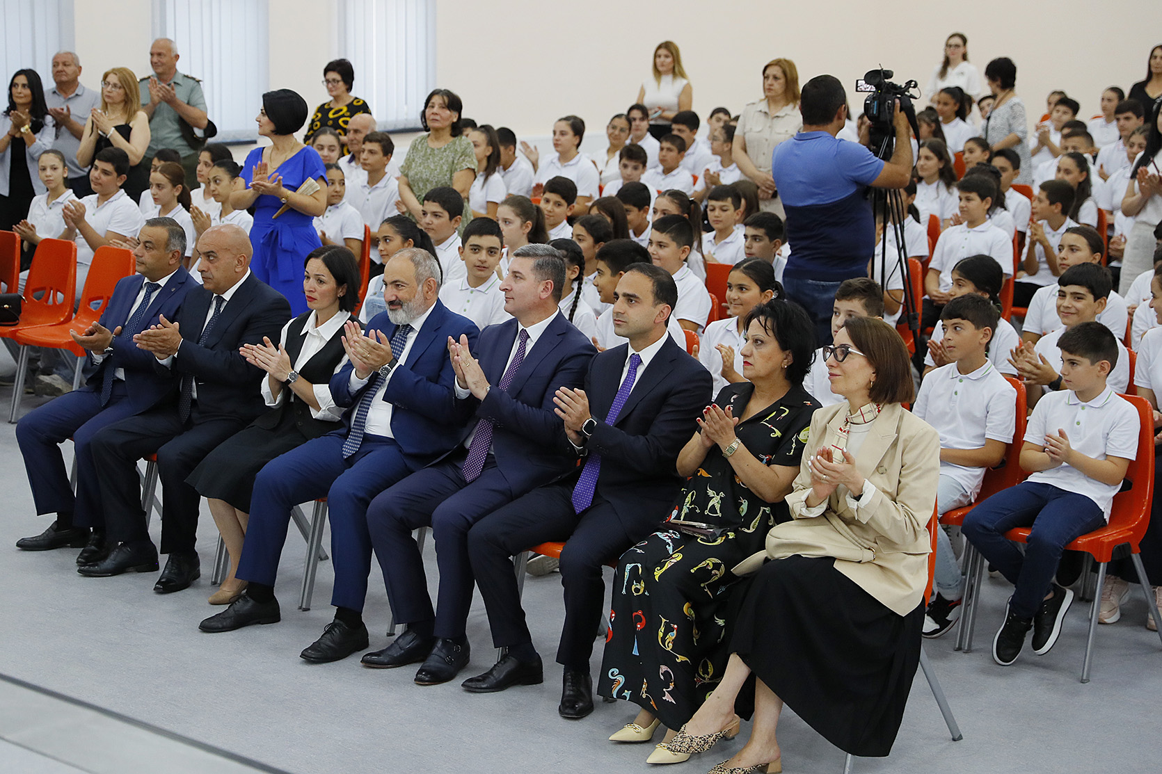 «Այս տարի սեպտեմբերի 1-ին մենք հանրապետությունում 8 դպրոց ենք բացել: Ես ուզում եմ թվարկել՝ Արմավիրի մարզի Պտղունքի միջնակարգ դպրոց, Արարատի մարզի Դեղձուտի հիմնական դպրոց, որտեղ այսօր նորից կայցելենք, Արագածոտնի մարզի Օհանավանի միջնակարգ դպրոց, Վայոց ձորի մարզի թիվ 1 հիմնական դպրոց, որտեղ կայցելենք, բայց ոչ այսօր, Կոտայքի մարզի Կաթնաղբյուրի հիմնական դպրոց: