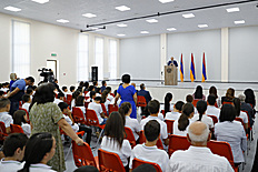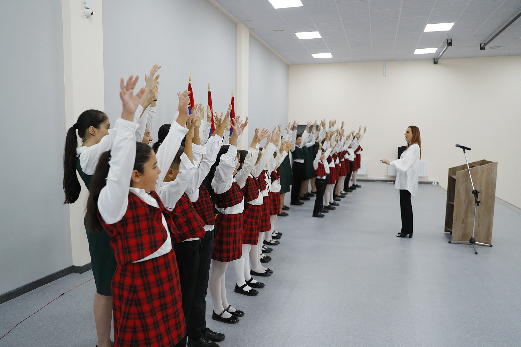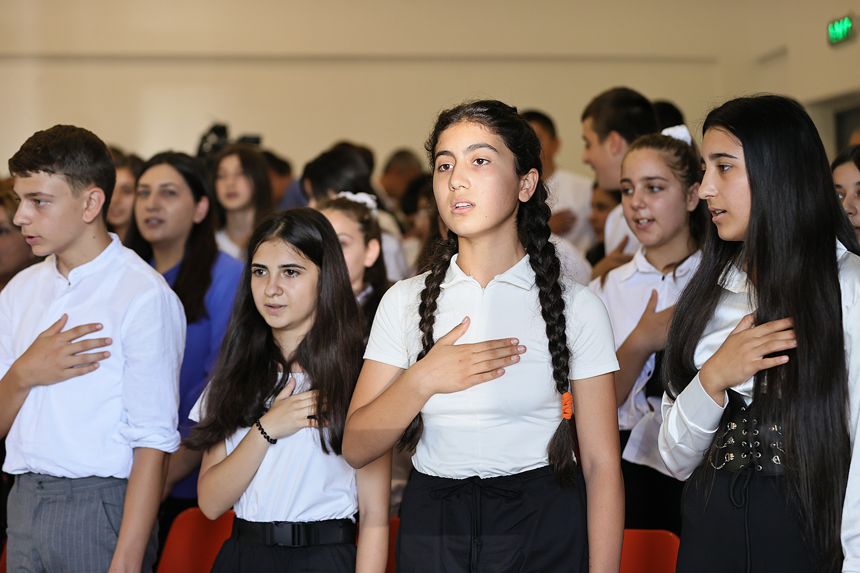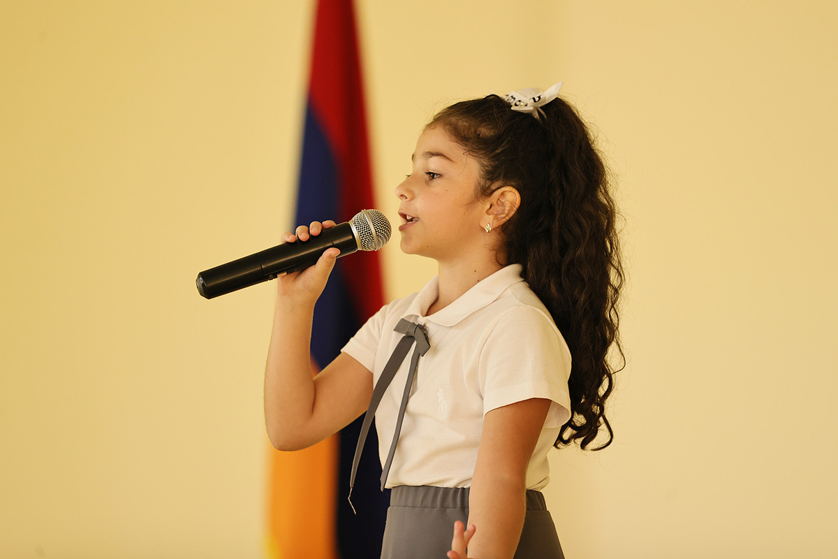 «Այս տարի սեպտեմբերի 1-ին մենք հանրապետությունում 8 դպրոց ենք բացել: Ես ուզում եմ թվարկել՝ Արմավիրի մարզի Պտղունքի միջնակարգ դպրոց, Արարատի մարզի Դեղձուտի հիմնական դպրոց, որտեղ այսօր նորից կայցելենք, Արագածոտնի մարզի Օհանավանի միջնակարգ դպրոց, Վայոց ձորի մարզի թիվ 1 հիմնական դպրոց, որտեղ կայցելենք, բայց ոչ այսօր, Կոտայքի մարզի Կաթնաղբյուրի հիմնական դպրոց: