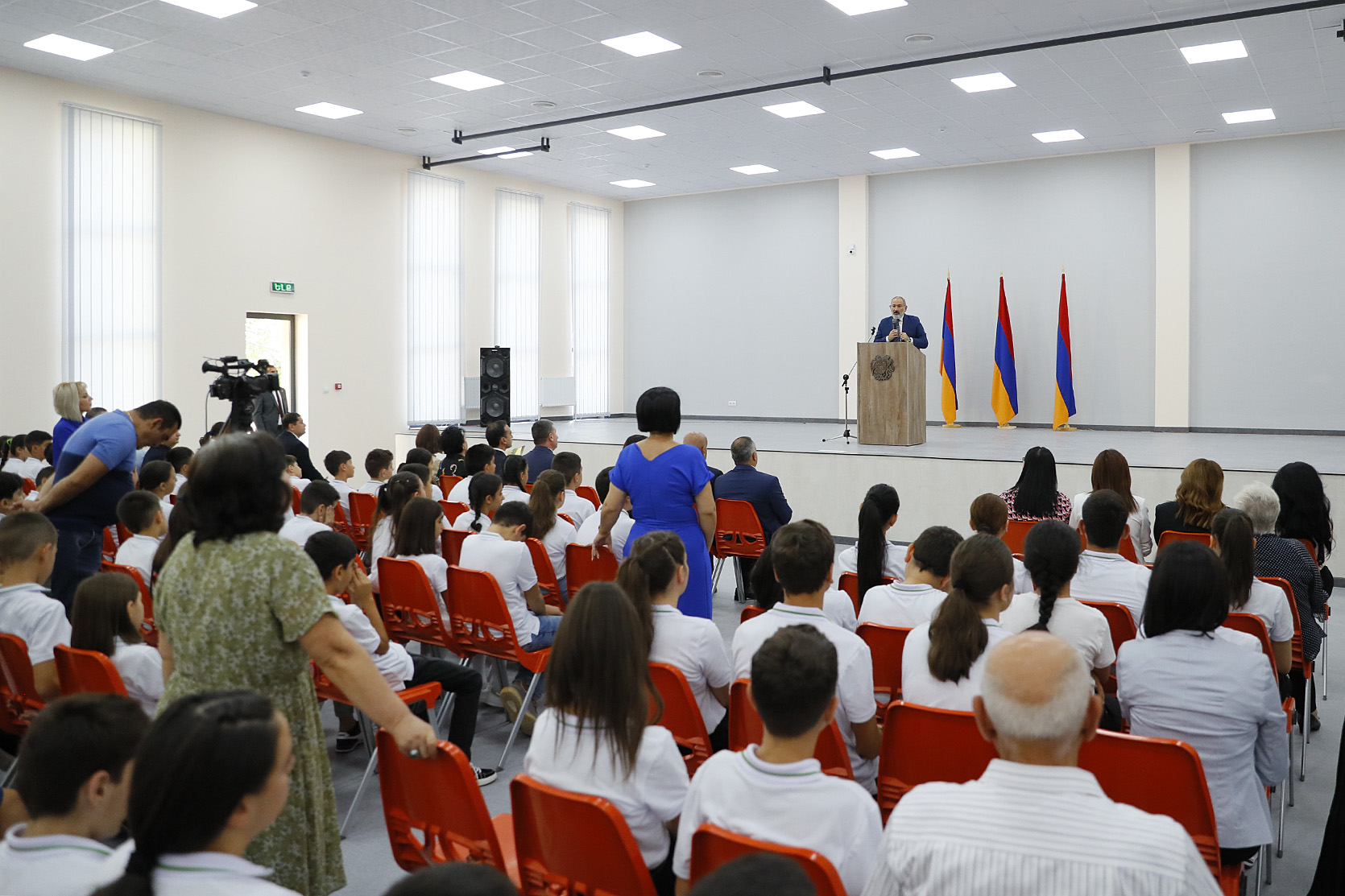 Նիկոլ Փաշինյանը շնորհավորել է ուսուցիչներին, աշակերտներին, բոլորին՝ հոյակերտ շենքի բացման առիթով. «Շենքը կառավարությունն ընդամենը բացել է, դուք պետք է ապահովեք նրա հետագա ընթացքը, հետագա կյանքը: Տեսեք, ամեն ինչ նոր է, նորոգված է, ես ուզում եմ, որ ժամանակի հետ դուք այնպես վերաբերվեք այս միջավայրին, որ ամեն ինչ լինի ավելի նոր, ավելի փարթամ, ավելի գեղեցիկ: Դա չի նշանակում, իմիջիայլոց, այդ էլ հաջորդ վտանգն է, որ չօգտագործենք, որ այդպես նոր էլ մնա: Ո՛չ, պետք է օգտագործել, պետք է ծառայեցնել կրթության նպատակին, զարգացման նպատակին, բարեկեցության նպատակին, պետք է ծառայեցնել հոգեբանական, ֆիզիկական և մտավոր ուժին: Մեր դպրոցի աշակերտը երեք հիմնական հատկությամբ պետք է դուրս գա, դա հավասարաբար վերաբերում է թե՛ տղաներին, թե՛ աղջիկներին՝ ուժեղ մտքով, ուժեղ մարմնով և ուժեղ հոգով, այսինքն՝ հոգեբանորեն ուժեղ: Այս երեքը չափազանց կարևոր են: Եթե մեկը մտքով ուժեղ է և թույլ է հոգեբանորեն՝ դա չի լուծի խնդիրը: Եթե ուժեղ է հոգեբանորեն, թույլ է մտքով և ֆիզիկապես՝ դա չի լուծի մեր խնդիրը: Մեզ պետք է լինել ուժեղ մտքով, ուժեղ հոգով և ուժեղ մարմնով: Եվ ես համոզված եմ՝ մենք ստեղծել ենք բոլոր պայմանները: Մենք էստաֆետը փոխանցում ենք ձեզ: Եվ ուզում եմ մաղթել, որ այդ էստաֆետը հաջող և հաղթանակած հասցնեք եզրագծին: