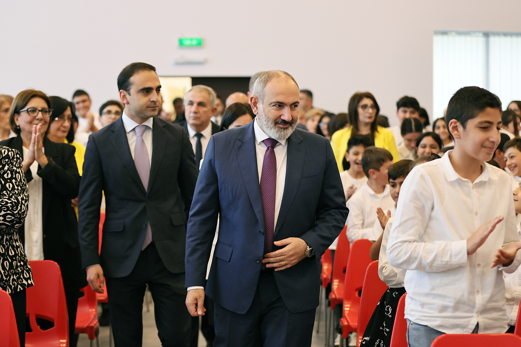Վարչապետին ուղեկցել են Երևանի քաղաքապետ Տիգրան Ավինյանը, Կրթության, գիտության, մշակույթի և սպորտի նախարար Ժաննա Անդրեասյանը, Տարածքային կառավարման և ենթակառուցվածքների նախարար Գնել Սանոսյանը և այլք: