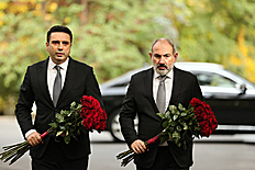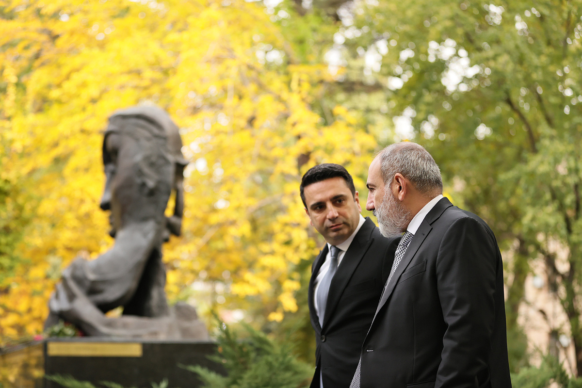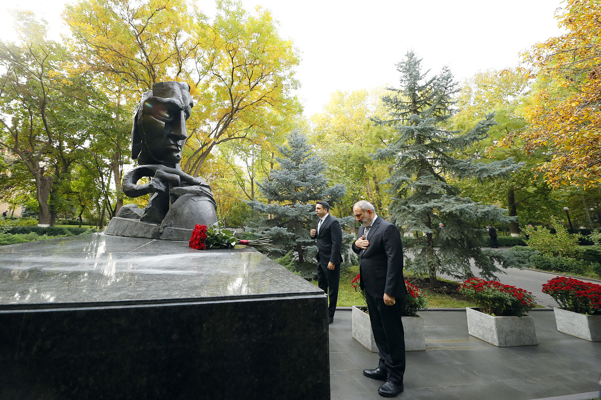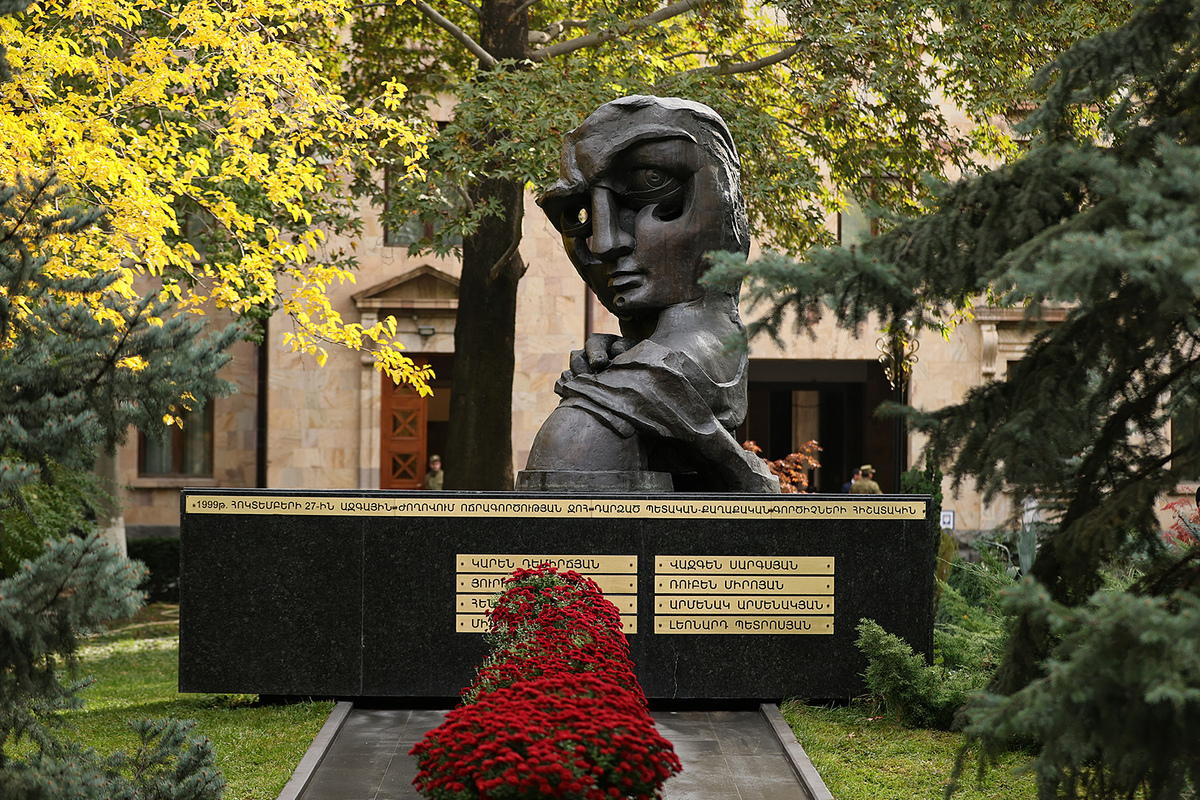 Վարչապետ Նիկոլ Փաշինյանն Ազգային ժողովի նախագահ Ալեն Սիմոնյանի հետ ծաղիկներ է խոնարհել ԱԺ այգում կանգնեցված հուշակոթողի մոտ և հարգանքի տուրք մատուցել 1999 թվականի հոկտեմբերի 27-ի ոճրագործության զոհ դարձած պետական և քաղաքական գործիչների հիշատակին: