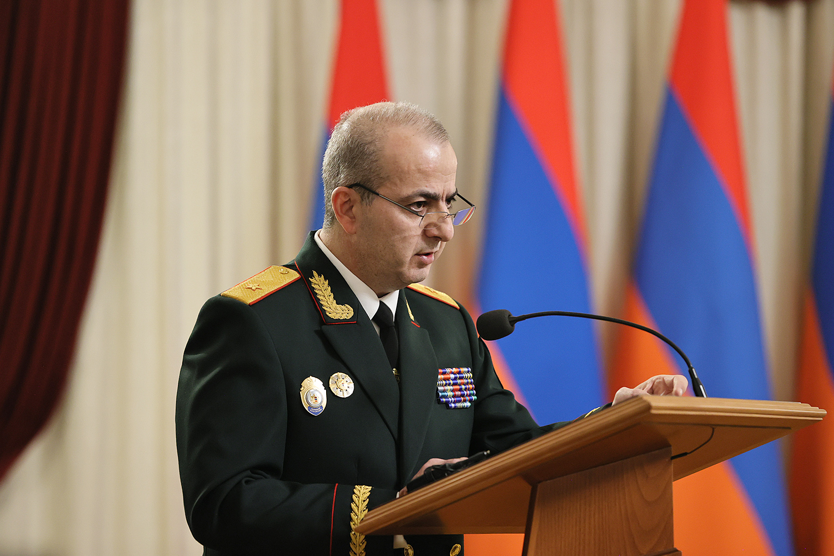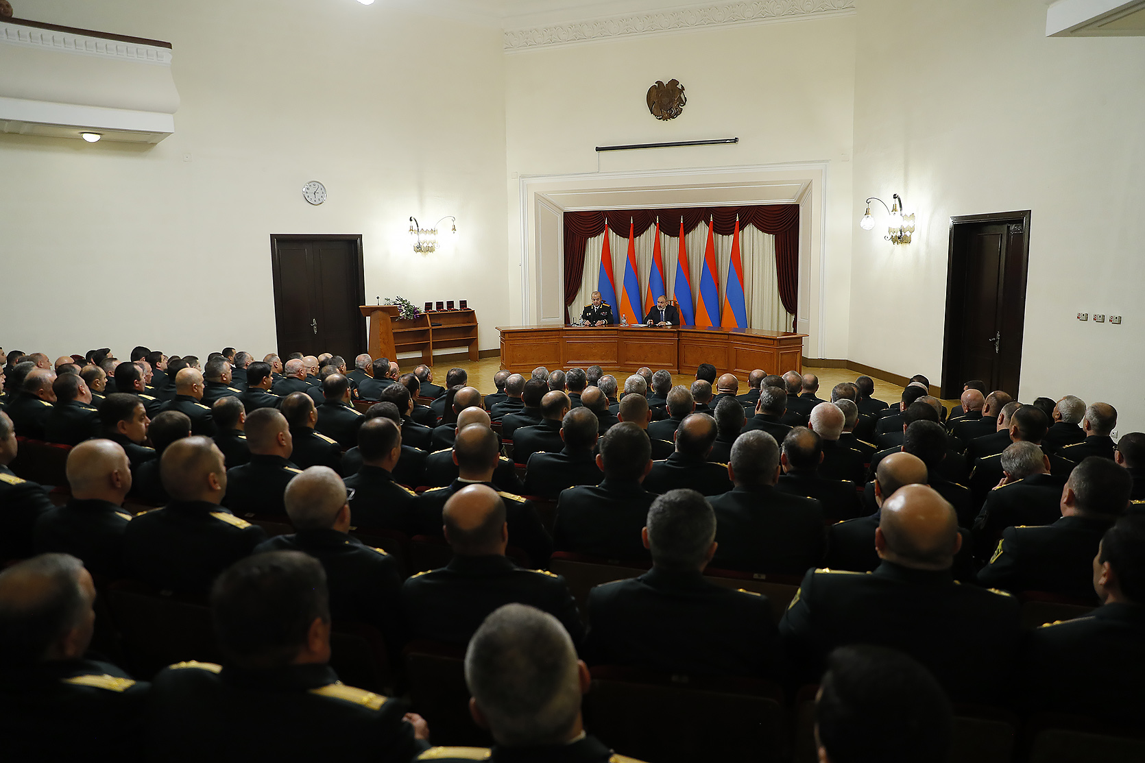 Կրկին ուզում եմ շնորհակալություն հայտնել բոլորիդ կատարած աշխատանքի համար: Ծառայության աշխատանքը շատ բարձր եմ գնահատում և, իհարկե, բոլորն են հասկանում, որ ԱԱԾ բնույթը շատ բարդ է և ԱԱԾ-ում ծառայելը հեշտ չէ: Դա նորմալ է, որ ԱԱԾ-ում ծառայելը հեշտ չէ, որովհետև այստեղ ավելի բարձր ստանդարտներ պետք է գործեն: Եվ ես կարծում եմ, որ մեր ընդհանուր ցանկությունն է, և նաև ծառայության հեղինակության, մասնագիտության հեղինակության առումով նաև դուք եք առաջին հերթին շահագրգիռ, որպեսզի ԱԱԾ-ում բոլոր ստանդարտները գնալով բարձրանան՝ մասնագիտության, բարեվարքության, պրոֆեսիոնալիզմի և այլն:
