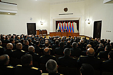 Նախ ուզում եմ բոլորիդ շնորհակալություն հայտնել կատարված և կատարվող աշխատանքի համար: Իհարկե, ինչպես բոլորիս աշխատանքը, Ազգային անվտանգության ծառայության աշխատանքն էլ անթերի չէ և չէր կարող լինել, բայց պիտի արձանագրեմ, որ ընդհանուր առմամբ Ազգային անվտանգության ծառայությունը նախորդ տարվա ընթացքում կատարել է անվտանգությունն ապահովելու իր առջև դրված խնդիրը: Եվ այս առումով, մենք վստահ ենք, որ Ազգային անվտանգության ծառայության աշխատանքի որակը գնալով բարելավվում է, և իհարկե, կառավարությունն ամեն կերպ քաջալերելու է այս գործընթացը»: