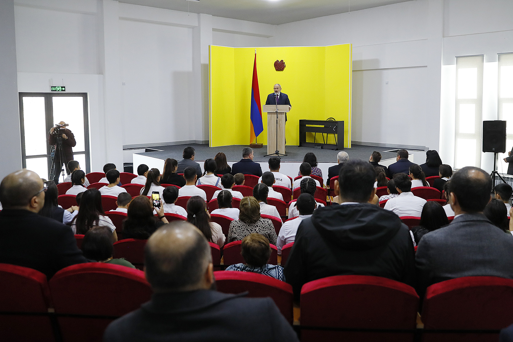 «Կարծում եմ, որ ընդհանրապես մեր կյանքում, և հատկապես՝ դպրոցներում, պաթոսը պետք է մի փոքր թուլացնենք և կենտրոնանանք գործի և աշխատանքի վրա, որովհետև երբեմն մենք էլ չենք նկատում, որ պաթոսն օգտագործվում է չարված աշխատանքը ծածկելու համար: Իսկ մեզ պետք է կենտրոնանալ աշխատանքի վրա և դուրս գալ այս կիսակատարության ռեժիմից, որովհետև կիսակատարությունը կարծես շարունակում է մնալ մեր հիմնական գործելակերպը: Այս շենքը երեխաների և ուսուցիչների համար է կառուցված, և ամեն ինչը պետք է հարմարեցվի նրանց: Կարևոր է, թե ինչ է լինելու դասասենյակներում: Այս շենքը դեռ կիսատ է, թերություններ ունի, գույքը ճանապարհին է, դեռ պետք է ապրեցնեք: Մենք ընդամենը, այսպես ասած, հողը վարած կամ կիսավարած տվել ենք ձեզ, դուք պիտի ցանեք, դուք պիտի մշակեք, դուք պիտի բերքը հավաքեք և իհարկե, նաև երկիրը և պետությունը պետք է այդ բերքը հավաքի: