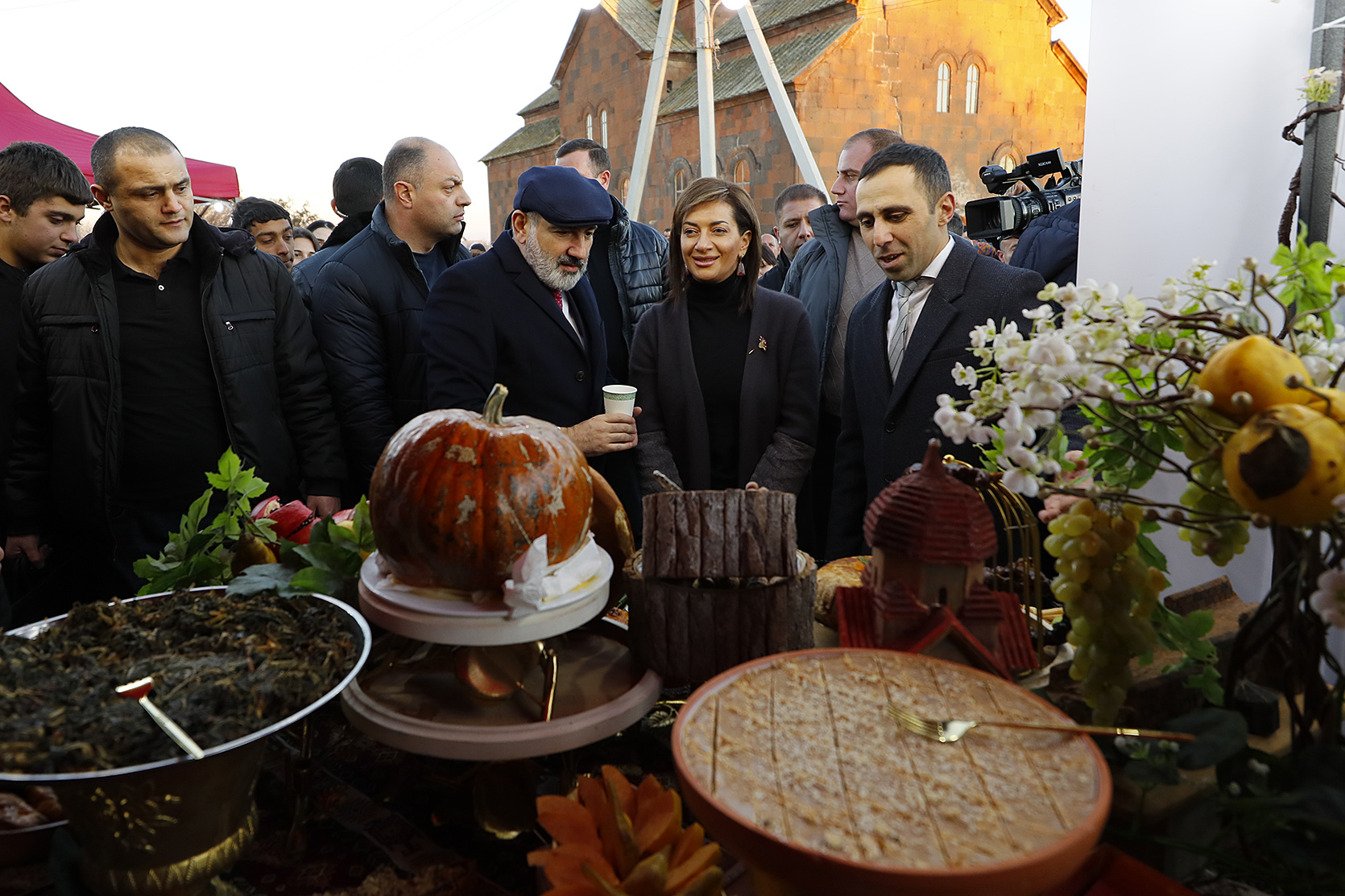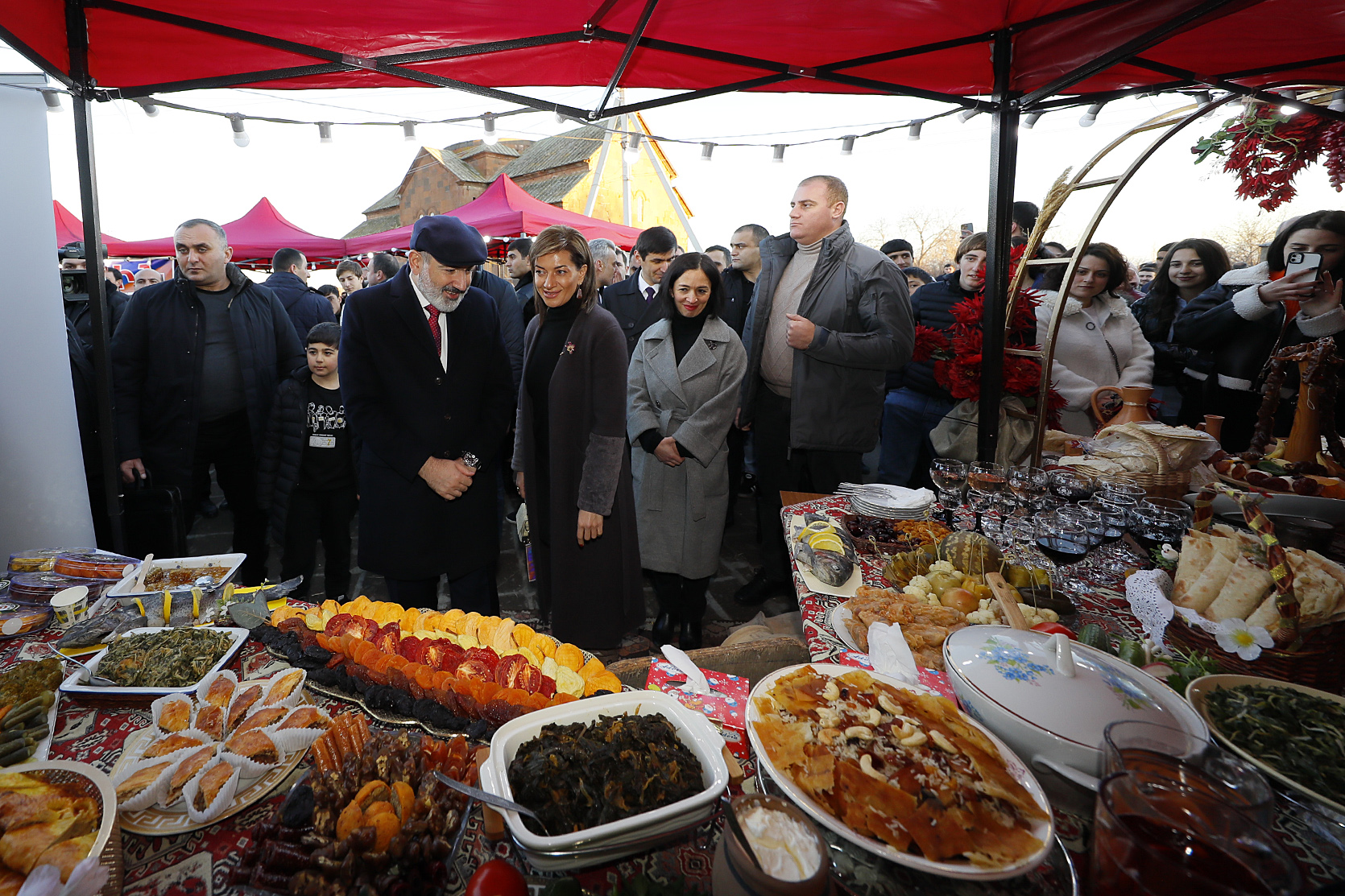 Վարչապետը տիկնոջ հետ շրջել է նաև եկեղեցու հարակից տարածքում բացված տաղավարներով, որտեղ ներկայացվել են տարածաշրջանին բնորոշ ուտեստներ, թեյ ու գինի: