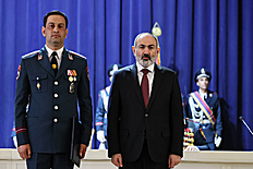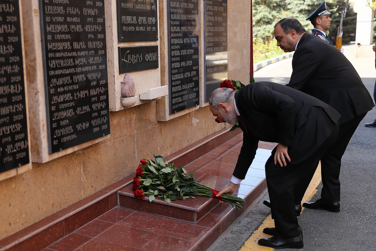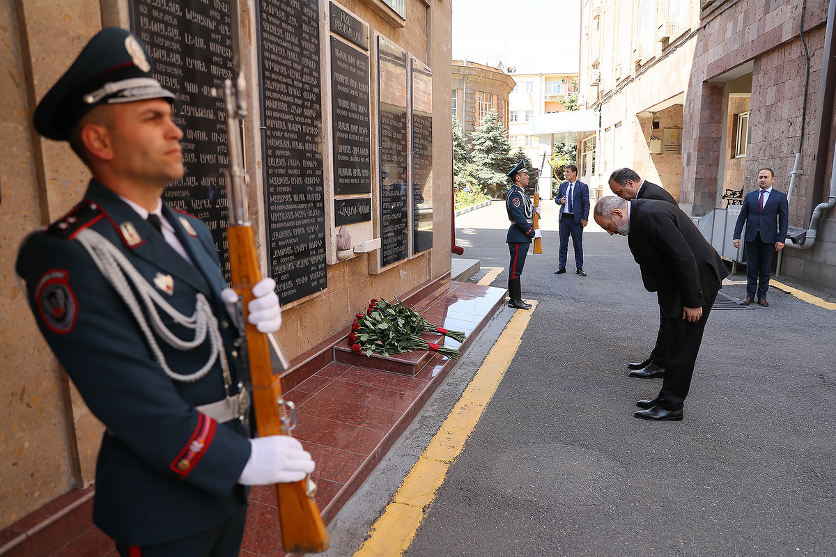Վարչապետ Նիկոլ Փաշինյանը Ներքին գործերի նախարարությունում մասնակցել է Ոստիկանության 106-րդ տարեդարձին նվիրված կոլեգիայի հանդիսավոր նիստին: Մինչ նիստը՝ Նիկոլ Փաշինյանը և ՆԳ նախարար Վահե Ղազարյանը ծաղիկներ են խոնարհել Ոստիկանության շենքի բակում տեղադրված հուշատախտակին և հարգանքի տուրք մատուցել հանուն հայրենիքի կյանքը նվիրաբերած ոստիկանների հիշատակին: