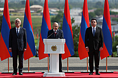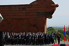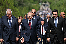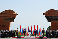Վարչապետ Նիկոլ Փաշինյանը նախագահ Վահագն Խաչատուրյանի, Ազգային ժողովի նախագահ Ալեն Սիմոնյանի և ՀՀ բարձրագույն ղեկավարության հետ Հանրապետության տոնի առիթով այցելել է Սարդարապատի հերոսամարտի հուշահամալիր:
