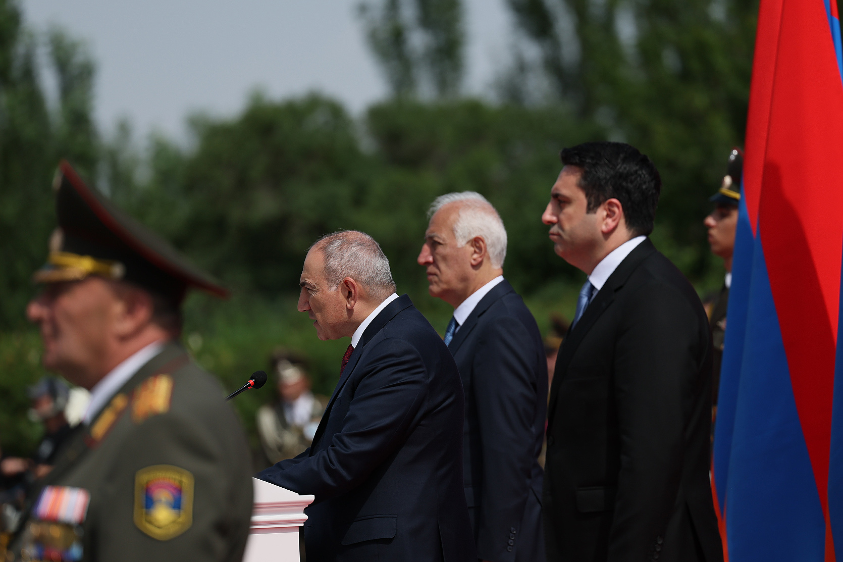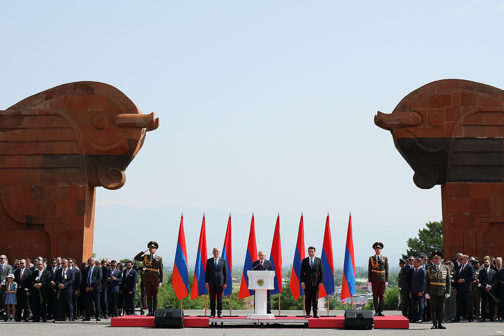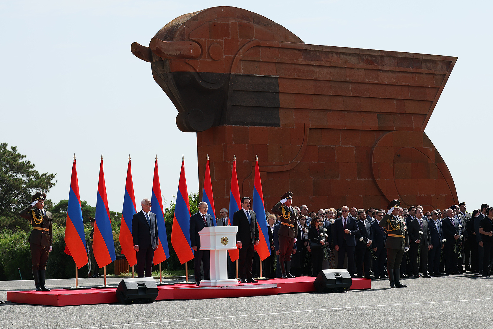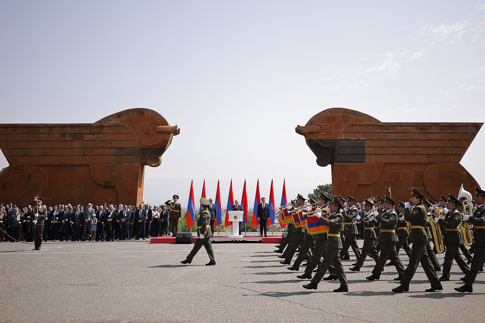 Հայաստանի Հանրապետության մեծարգո՛ նախագահ, Ազգային ժողովի մեծարգո՛ նախագահ, Սահմանադրական դատարանի մեծարգո՛ նախագահ, օրենսդիր, գործադիր, դատական իշխանությունների հարգելի՛ ներկայացուցիչներ, պարոնայք գեներալներ և սպաներ, հարգելի՛ ներկաներ,