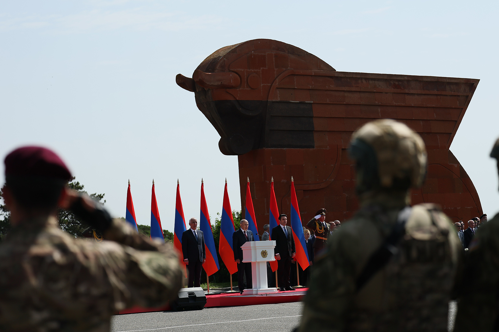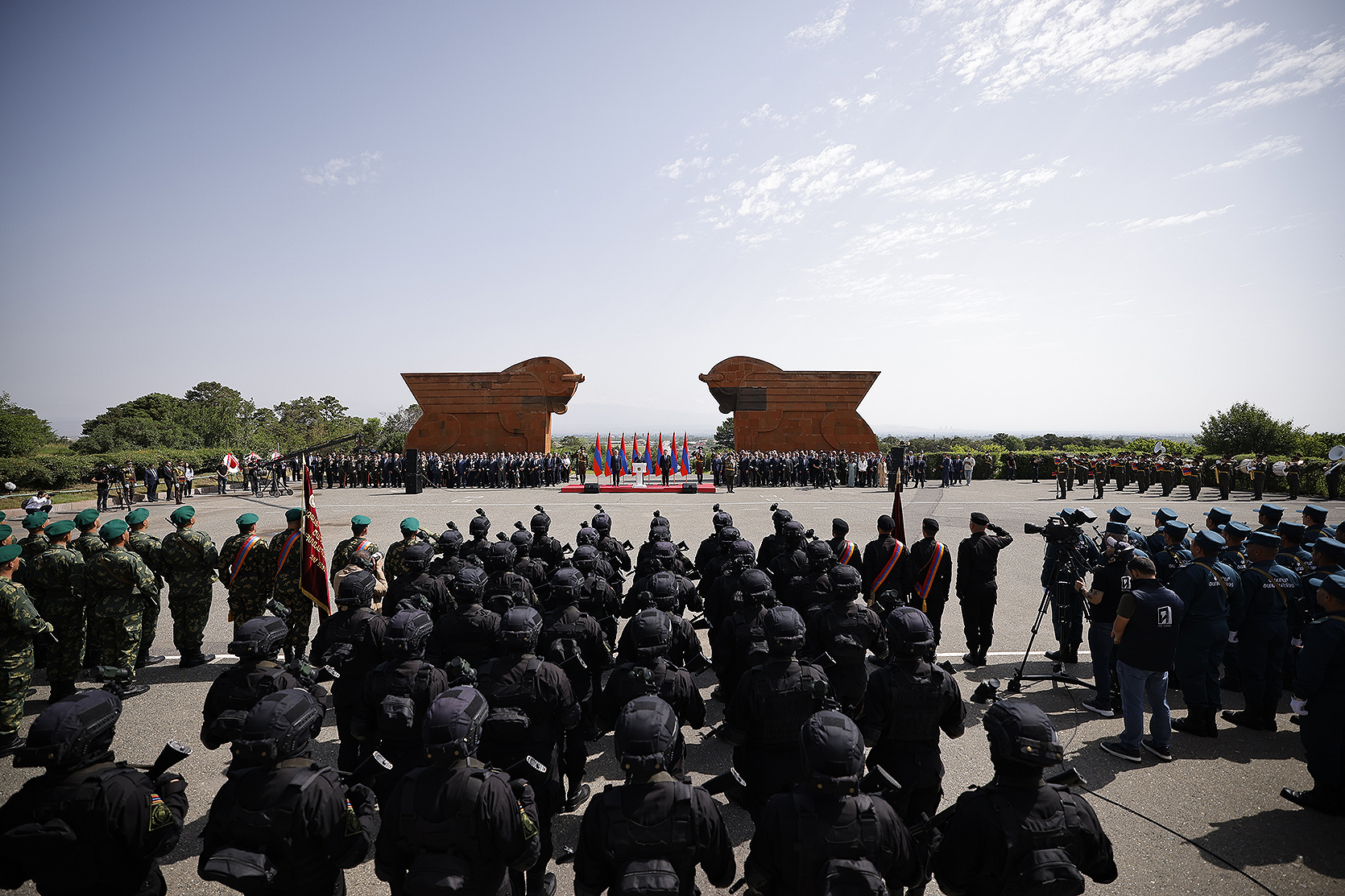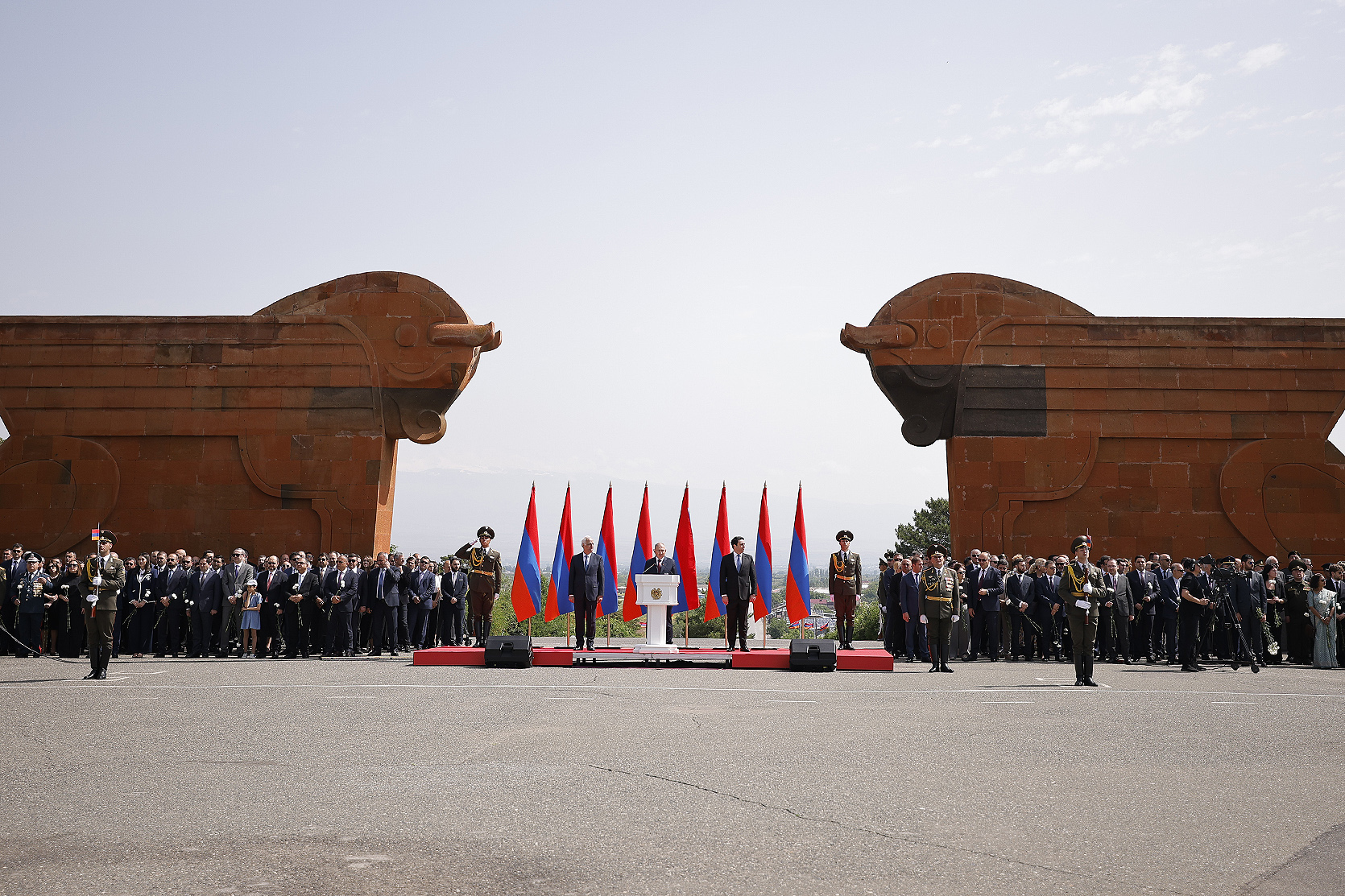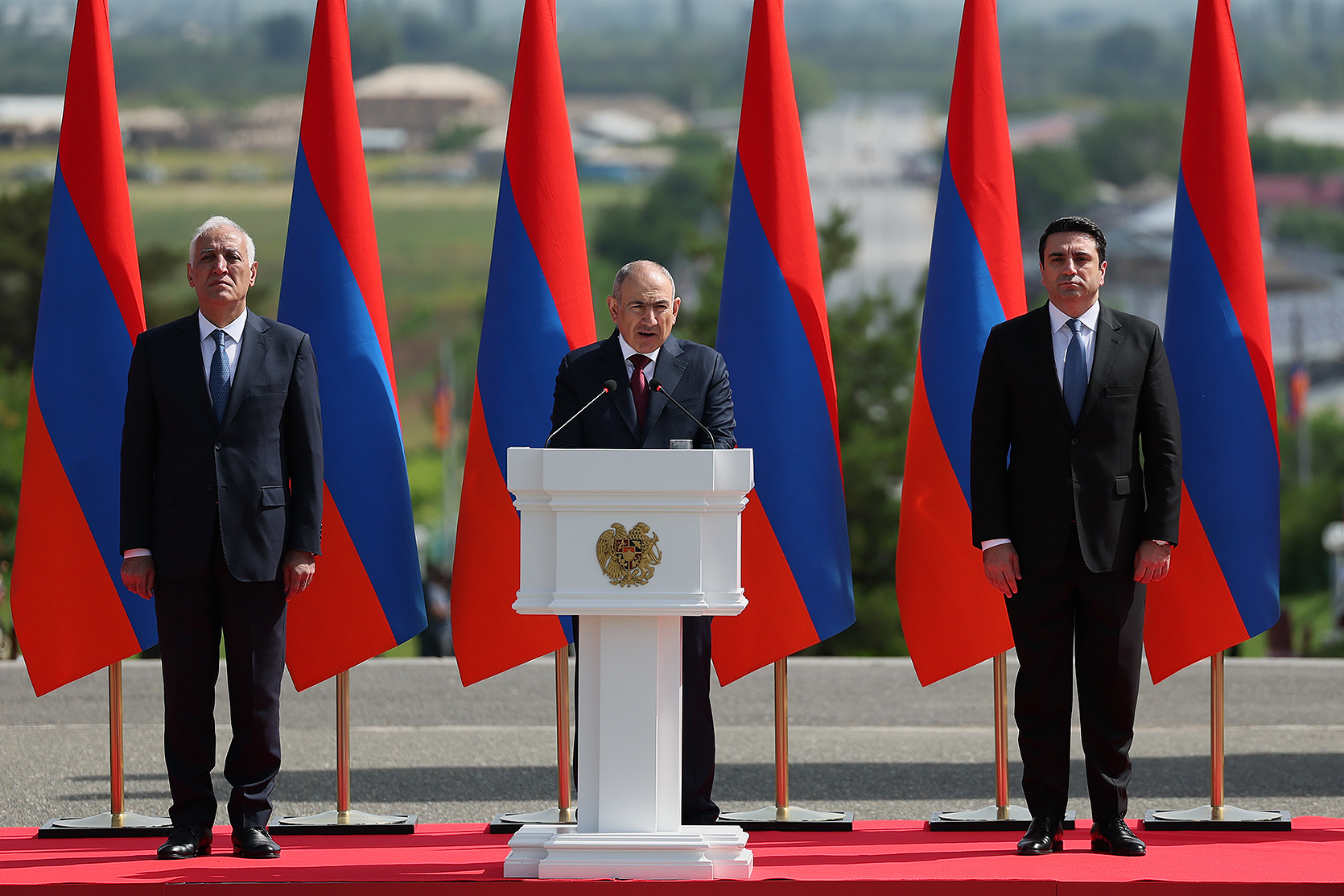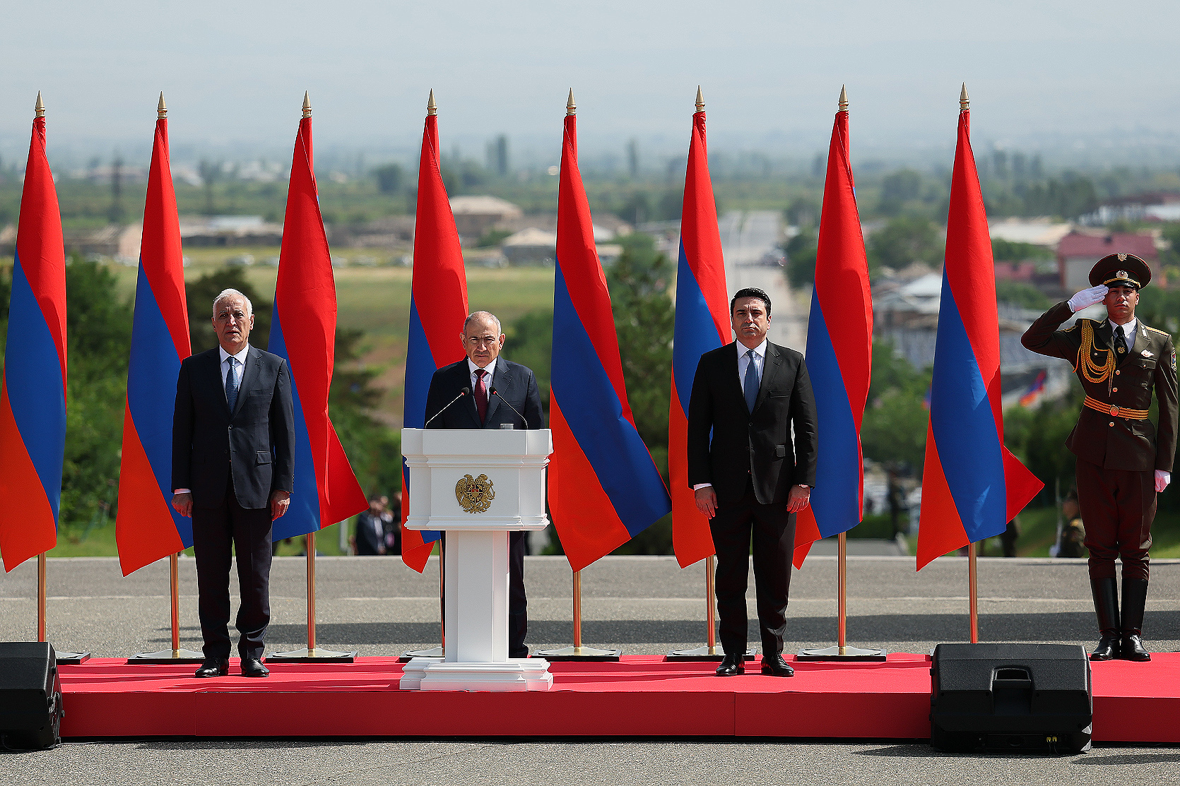 Հայաստանի Հանրապետության մեծարգո՛ նախագահ, Ազգային ժողովի մեծարգո՛ նախագահ, Սահմանադրական դատարանի մեծարգո՛ նախագահ, օրենսդիր, գործադիր, դատական իշխանությունների հարգելի՛ ներկայացուցիչներ, պարոնայք գեներալներ և սպաներ, հարգելի՛ ներկաներ,