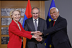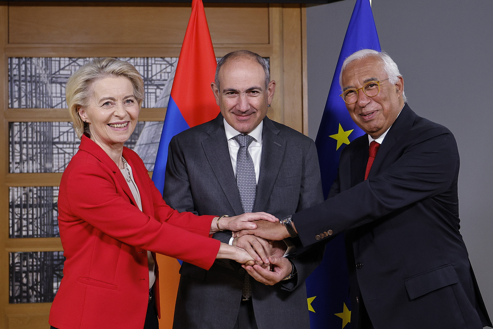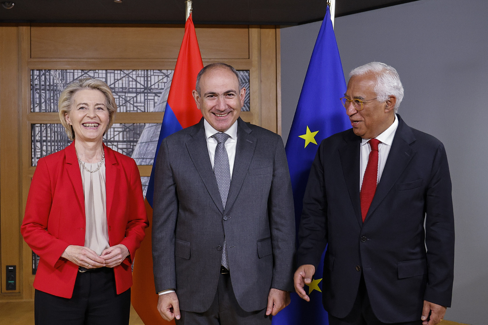 Այսօր Բրյուսելում Եվրոպական խորհրդի նախագահ Անտոնիու Կոշտան և Եվրոպական հանձնաժողովի նախագահ Ուրսուլա ֆոն դեր Լայենը հանդիպեցին ՀՀ վարչապետ Նիկոլ Փաշինյանի հետ՝ Եվրոպական միության և Հայաստանի միջև աճող գործընկերությունը վերահաստատելու և առաջ մղելու նպատակով: Նախագահ Կոշտան և նախագահ ֆոն դեր Լայենը ողջունեցին Հայաստանի հավակնոտ բարեփոխումների օրակարգը և իրենց աջակցությունը հայտնեցին Հայաստանի ինքնիշխանությանը, տարածքային ամբողջականությանը և ժողովրդավարական բարեփոխումներին:
