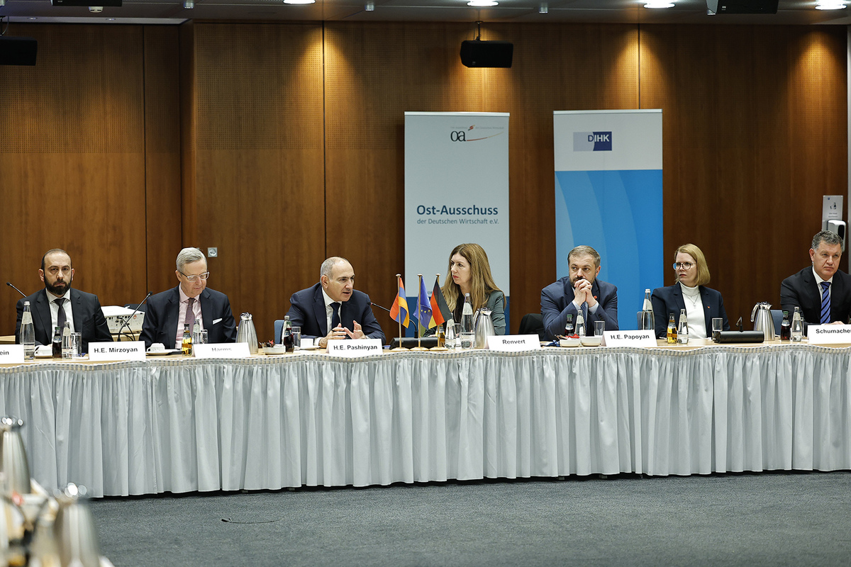 Գերմանական արևելյան գործարար ասոցիացիայի գլխավոր տնօրեն Միքայել Հարմսը շնորհակալություն է հայտնել վարչապետին հանդիպման համար և նշել, որ գերմանացի գործարարները հետաքրքրված են Հայաստանի հետ համագործակցությամբ և այսօրվա հանդիպումը լավ հնարավորություն է ծանոթանալու առկա հնարավորություններին և հեռանկարներին: