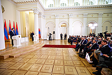 Այն մեծ տնտեսական համագործակցությունը, որի մասին մենք այսօր հայտարարելու ենք, անհնար կլիներ առանց Ձեր առաջնորդության, առանց այն խաղաղության, որին Դուք հանձնառել եք Ձեր երկիրը, և, իհարկե, առանց Միացյալ Նահանգների նախագահի առաջնորդության։ Ես շնորհակալ եմ այս ամենի համար, քանի որ իսկապես հավատում եմ, որ այսօր երեկոյան նոր սկիզբ է նշանավորվում Հայաստանի և Միացյալ Նահանգների համար և այն գործընկերության համար, որը մեր երկրները կարող են ունենալ։