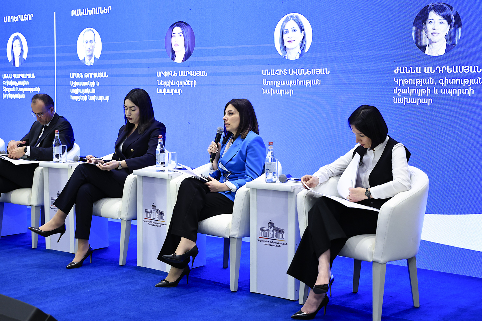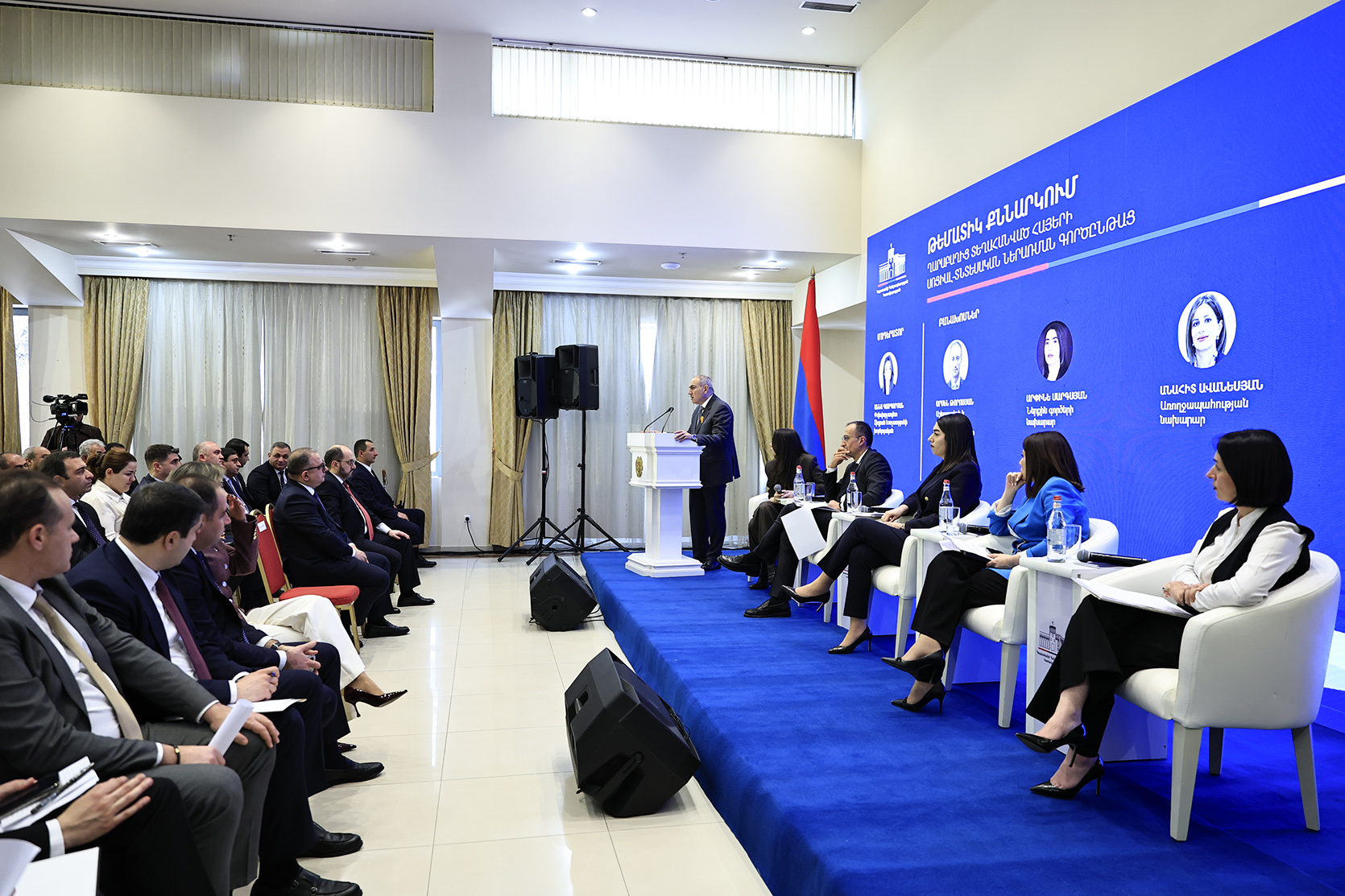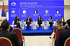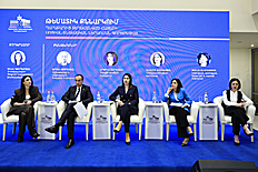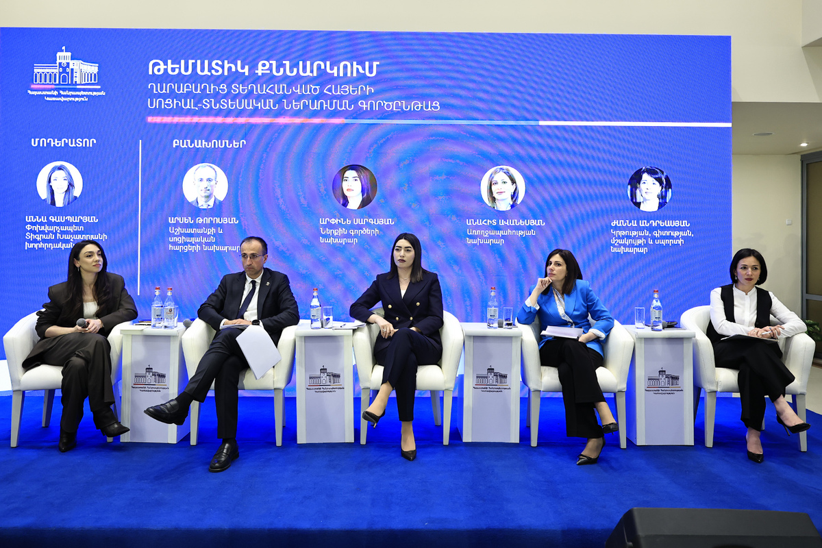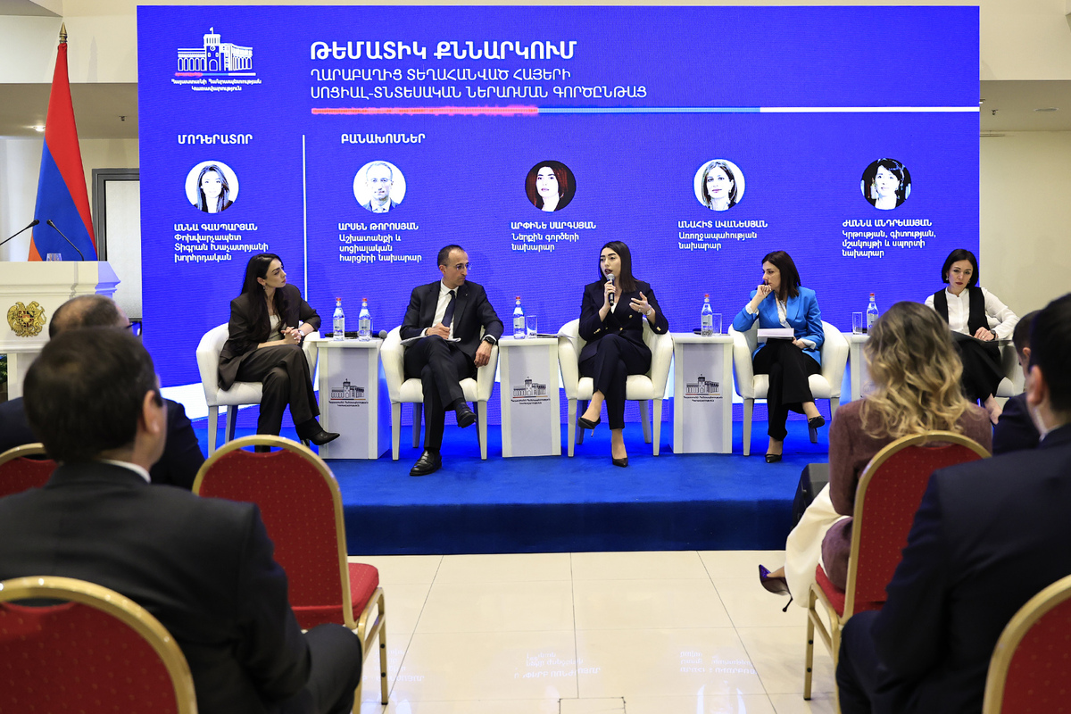 Հաջորդիվ անցկացվել է պանելային քննարկում՝ «Ղարաբաղից տեղահանված հայերի սոցիալ-տնտեսական ներառման գործընթացը» թեմայով, որին մասնակցել են շահագրգիռ գերատեսչությունների ղեկավարները և պատասխանել հարցերին, որոնք հիմնականում վերաբերել են բնակարանային ապահովմանը, կրթական, առողջապահական, սոցիալական, զբաղվածության ծրագրերին, քաղաքացիության ստացման կարգին։