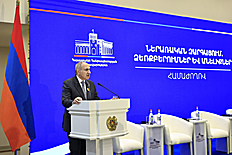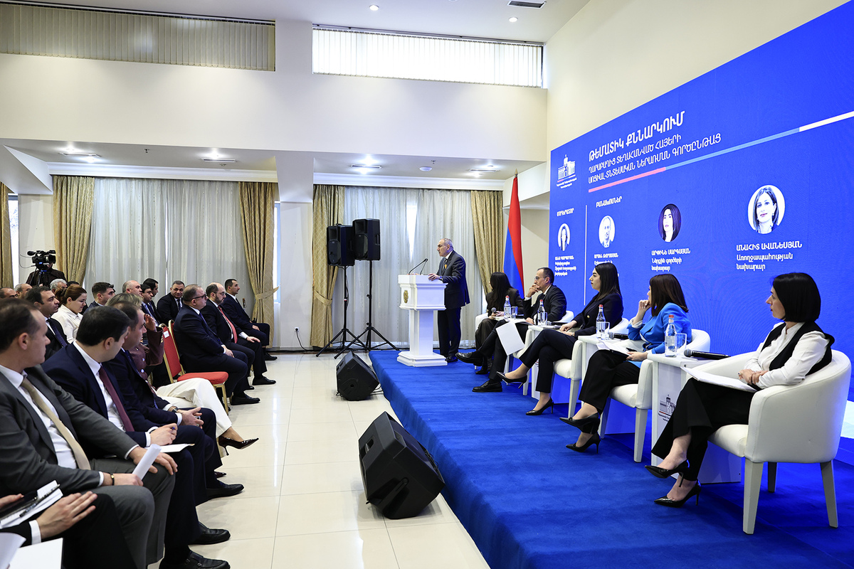 Վարչապետը հանդես է եկել ելույթով, ողջունել ներկաներին և նշել, որ այս ընթացքում տաբեր ձևաչափերով անընդհատ կապի մեջ են եղել Ղարաբաղից տեղահանված մեր հայրենակիցների հետ։ «Կառավարության օրակարգում, 2023 թվականից ի վեր, այս թեման եղել է առաջնահերթությունների շարքում։ Մենք նաև հրապարակային երկխոսության միջոցով փորձել ենք մեր քաղաքականությունների շրջանակներն ընդգծել Ղարաբաղից տեղահանված մեր հայրենակիցների համար՝ մեր ռազմավարական պատկերացումներն ավելի ընկալելի դարձնելու և, ինչպես ես ձևակերպում եմ՝ Հայաստանում տնավորվելու թեմայի վրա առավել մեծ կենտրոնացվածություն ցուցաբերելու նպատակով»,- ասել է Նիկոլ Փաշինյանը։