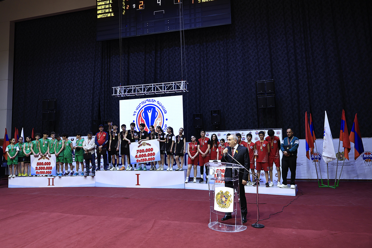 Պարգևատրման արարողությունից հետո, վարչապետը հանդես է եկել ելույթով, շնորհավորել բոլորին հերթական մարզական տոնի առիթով. «Երբ այս մրցաշարն ստեղծում էինք, մեր նպատակադրումը հենց սա էր՝ երեխաների, աշակերտների, ուսուցիչների, նրանց ծնողների համար տոն ստեղծելը, և արդեն երկրորդ տարին է, որ մասնակցում ենք կոնկրետ բասկետբոլի լիգային: Մենք տեսնում ենք՝ այդ տոնը ձևավորված է, և ես համոզված եմ, որ ամեն տարվա հետ այդ տոնն ավելի հիշարժան է լինելու։ Իհարկե, երկրորդ տարին անընդմեջ Երևանի թիմերի գերակայությունն ակնհայտ է, բայց կարծում եմ՝ մարզերը նաև շատ կարևոր մոտիվացիա են ստանում, մանավանդ, որ հիմա դպրոցաշինության ծրագրում և՛ Երևանում, և՛ մարզերում լայնածավալ ներդրումներ ենք անում: Դպրոցներում ֆիզկուլտուրայի դահլիճները կառուցվում են հիմնականում բասկետբոլի հենքի վրա: Առաջիկայում նպատակադրվել ենք, բացի նոր 300 դպրոցից և մարզադպրոցներից, ևս 100 կոմբինացված խաղահրապարակներ կառուցել հանրապետությունում, որտեղ կլինեն և՛ մինի ֆուտբոլի, և՛ բասկետբոլի հրապարակներ»: