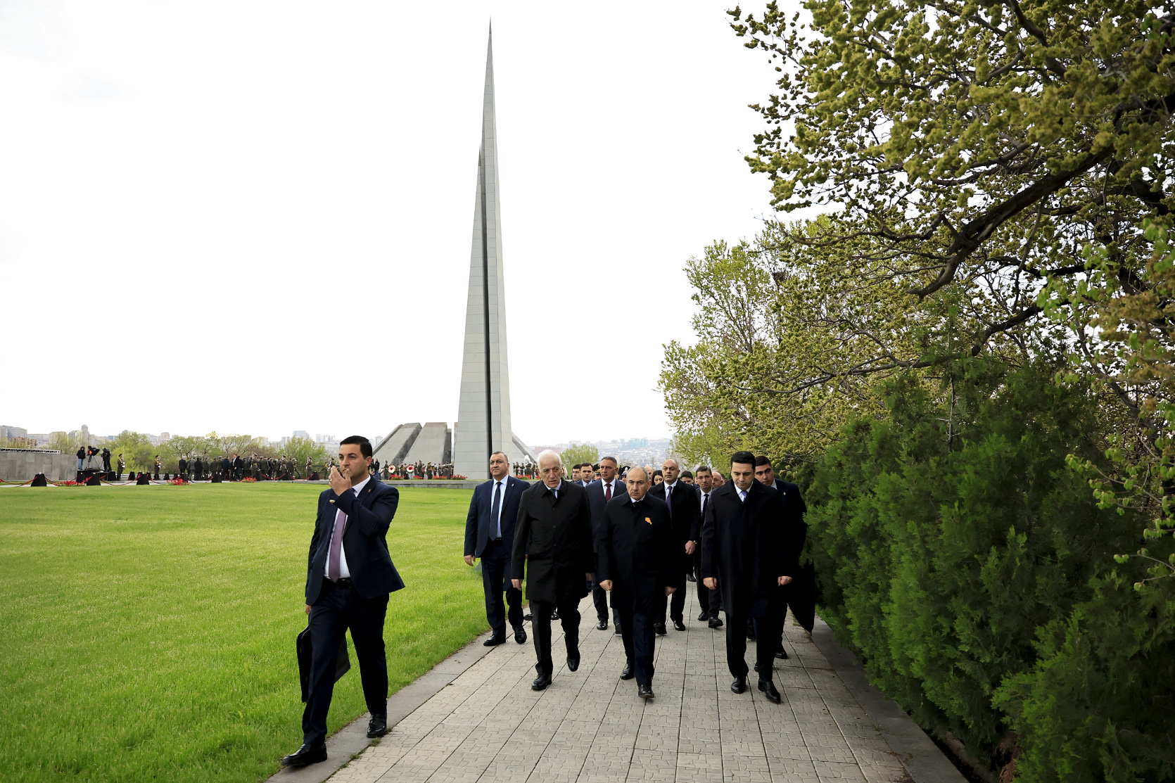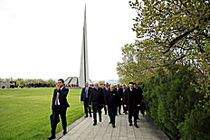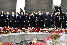 Վարչապետ Նիկոլ Փաշինյանը ՀՀ նախագահ Վահագն Խաչատուրյանի, Ազգային ժողովի նախագահ Ալեն Սիմոնյանի և երկրի բարձրագույն ղեկավարության հետ Հայոց ցեղասպանության 111-րդ տարելիցի կապակցությամբ այցելել է Ծիծեռնակաբերդի հուշահամալիր՝ հարգանքի տուրք մատուցել Մեծ Եղեռնի 1,5 միլիոն զոհերի հիշատակին: