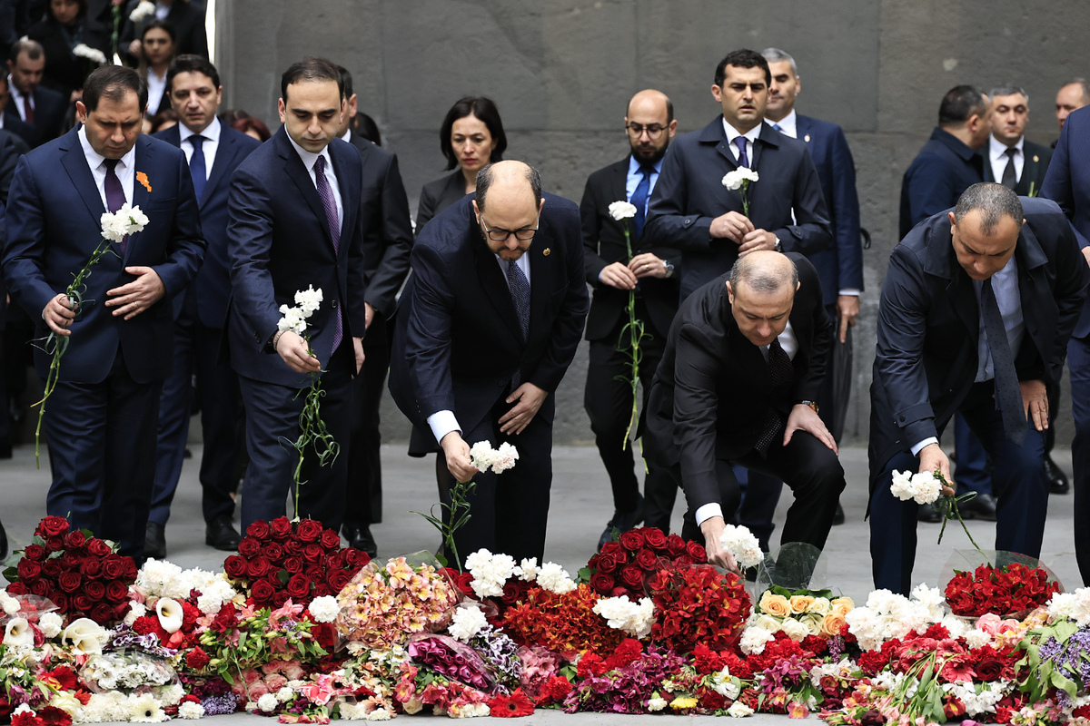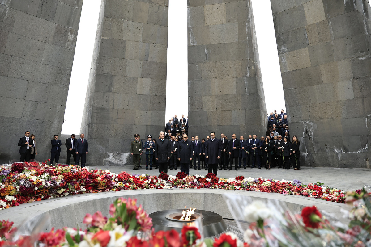Նիկոլ Փաշինյանը ծաղկեպսակ է դրել հուշակոթողին, ծաղիկներ խոնարհել Հայոց ցեղասպանության զոհերի հիշատակը հավերժացնող անմար կրակի մոտ: