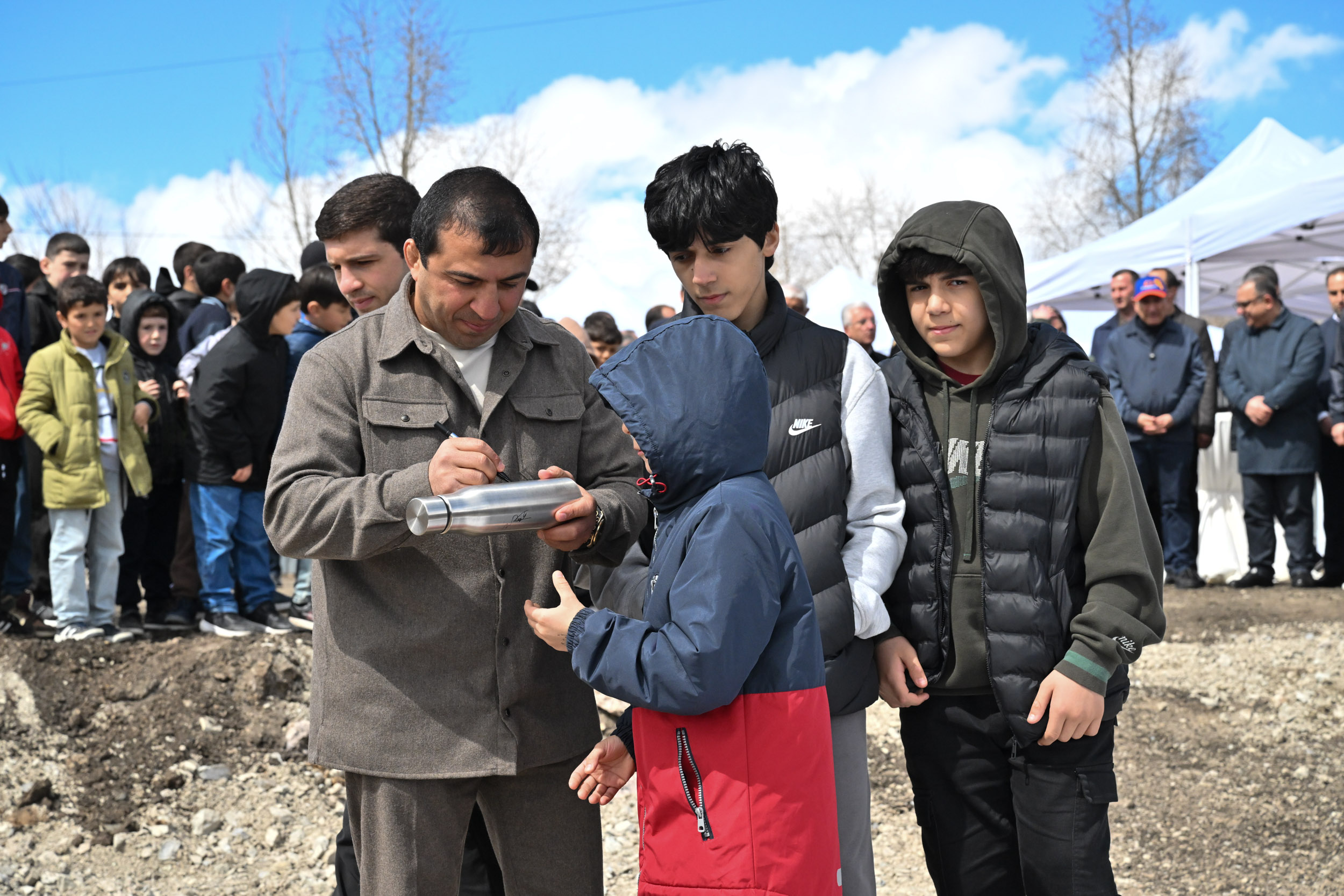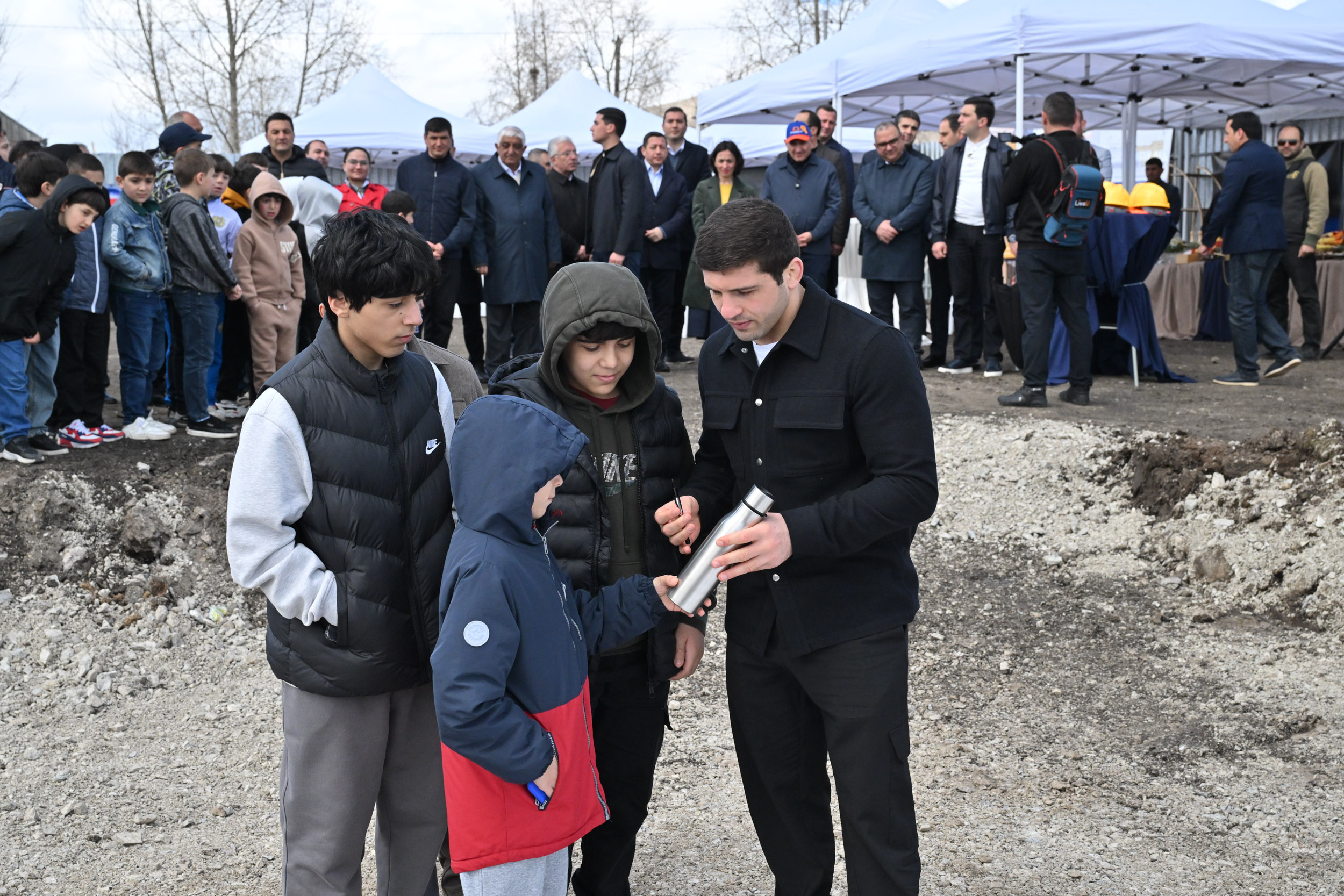 Վարչապետը շնորհավորել է ներկաներին մարզադպրոցի հիմնարկեքի առիթով և հույս հայտնել, որ այն շահագործման կհանձնվի սահմանված ժամկետում: Նիկոլ Փաշինյանը, դիմելով Մալխաս և Ռոման Ամոյաններին, նշել է, որ այս ամենը Հայաստանի Հանրապետության հարգանքի տուրքն է իրենց մարզական վաստակին և ծառայություններին: