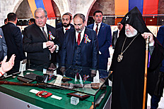 Այնուհետև վարչապետը միջոցառման մասնակիցների հետ Սարդարապատի հուշահամալիրի Հայոց ազգագրության և ազատագրական պայքարի պատմության ազգային թանգարանում դիտել է «Հայաստանի Առաջին Հանրապետության կազմավորումը և մայիսյան հերոսամարտերի պատմությունը» խորագրով ցուցահանդեսը: