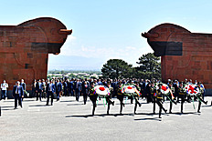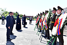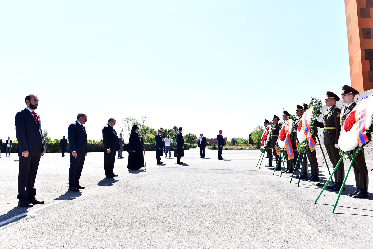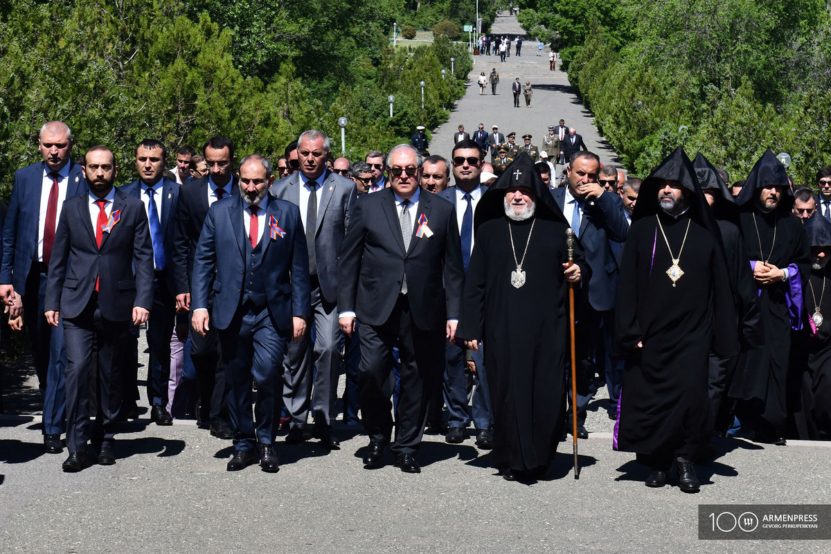 Վարչապետ Նիկոլ Փաշինյանը Սարդարապատի հերոսամարտի հուշահամալիրում Ն.Ս.Օ.Տ.Տ. Գարեգին Բ Ամենայն Հայոց Կաթողիկոսի, նախագահ Արմեն Սարգսյանի, Հանրապետության բարձրագույն ղեկավարության և հուշահամալիր այցելած հյուրերի հետ մասնակցել է Հանրապետության տոնին նվիրված տոնակատարությանը: