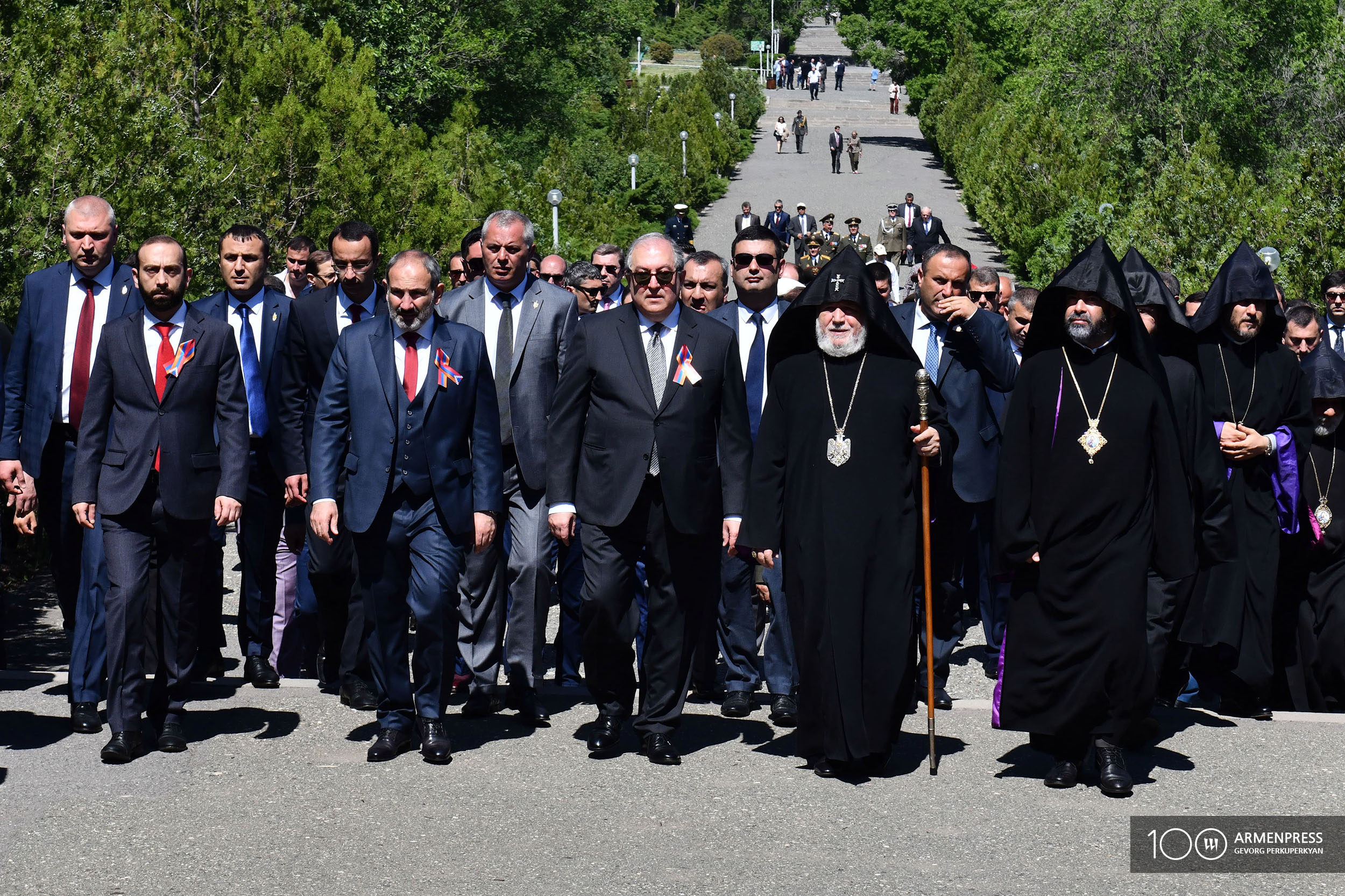 Հանգչեք խաղաղությամբ Սարդարապատի, Բաշ-Ապարանի, Ղարաքիլիսայի հերոսամարտը կերտած նահատակներ, հանգչեք խաղաղությամբ Առաջին Հանրապետության պետական այրեր, կառավարության անդամներ՝ գլխավորությամբ Առաջին Հանրապետության չորս վարչապետերի՝ Հովհաննես Քաջազնունի, Ալեքսանդր Խատիսյան, Համո Օհանջանյան, Սիմոն Վրացյան: Հանգչեք խաղաղությամբ Սարդարապատի, Բաշ Ապարանի, Ղարաքիլիսայի հերոսամարտը կերտած հրամանատարներ, պետական այրեր՝ Արամ Մանուկյան, Թովմաս Նազարբեկյան, Դանիել Բեկ-Փիրումայն, Դրաստամատ Կանայան, Մովսես Սիլիկյան, Քրիստափոր Արարատյան, Պողոս Բեկ-Փիրումյան, որովհետև ձեր սխրանքը, ձեր գործը տեր ունի այսօր: