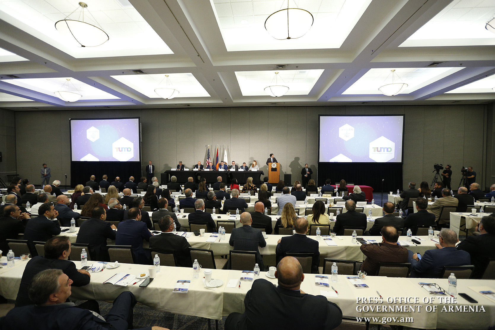 Հաջորդիվ ելույթներով են հանդես եկել ՀՀ բարձր տեխնոլոգիական արդյունաբերության նախարար Հակոբ Արշակյանը, ով անդրադարձել է Հայաստանում տեղեկատվական տեխնոլոգիաների և բարձր տեխնոլոգիական արդյունաբերության զարգացման ուղղություններին, և ՀՀ էկոնոմիկայի նախարար Տիգրան Խաչատրյանը, ով ներկայացրել է Հայաստանի տնտեսության առաջնահերթությունները, տնտեսական աճի ընթացիկ դինամիկան, ներդրումային միջավայրը։ Արտերկրյա մասնավոր ներդրումային կորպորացիայի ներկայացուցիչ Բրայան Չըրչհիլն էլ իր խոսքում անդրադարձել է հայ-ամերիկյան ներդրումային համագործակցության զարգացման հնարավորություններին։