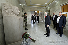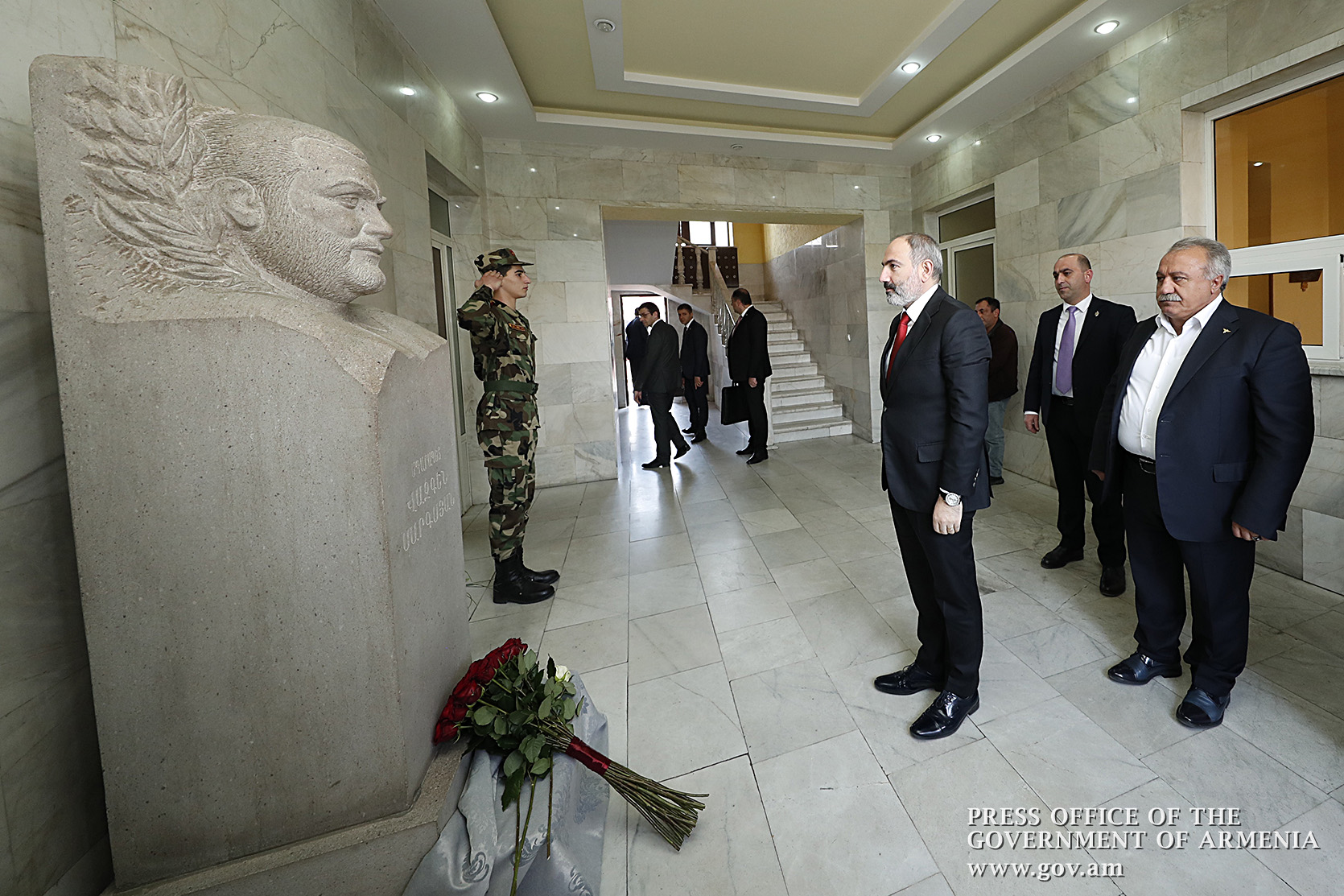 Վարչապետ Նիկոլ Փաշինյանը Երկրապահ կամավորականների միությունում մասնակցել է սպարապետ Վազգեն Սարգսյանի ծննդյան 61-ամյակին նվիրված միջոցառմանը: Վարչապետը նախ ծաղիկներ է խոնարհել Վազգեն Սարգսյանի հուշարձանին և հարգանքի տուրք մատուցել նրա հիշատակին: