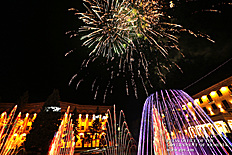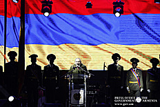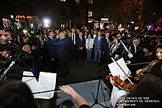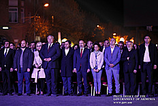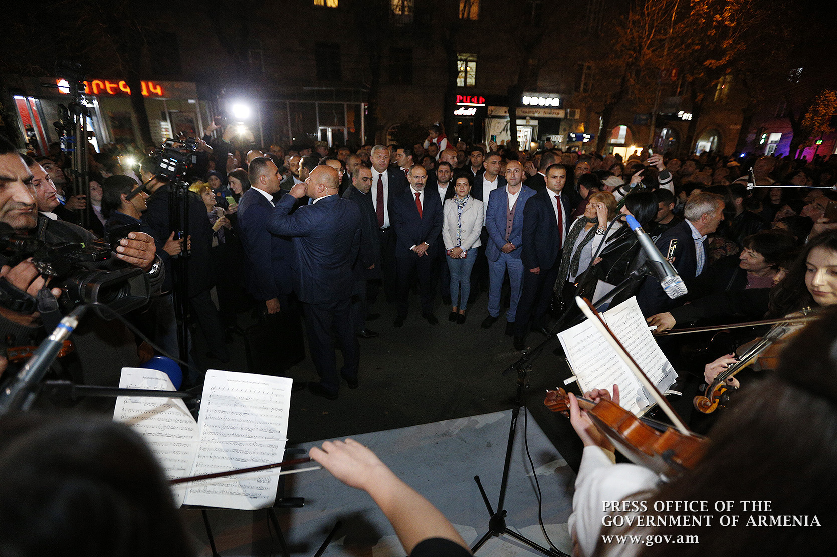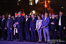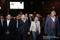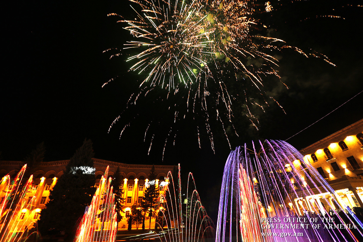 Премьер-министр Никол Пашинян и г-жа Анна Акопян с проспекта Тиграна Мец прошли к площади “Айк”, где приняли участие в главном мероприятии Дня города с праздничным концертом, церемонией открытия новых фонтанов и фейерверком.