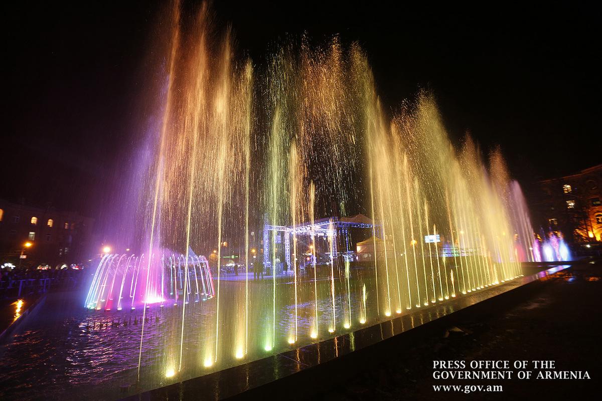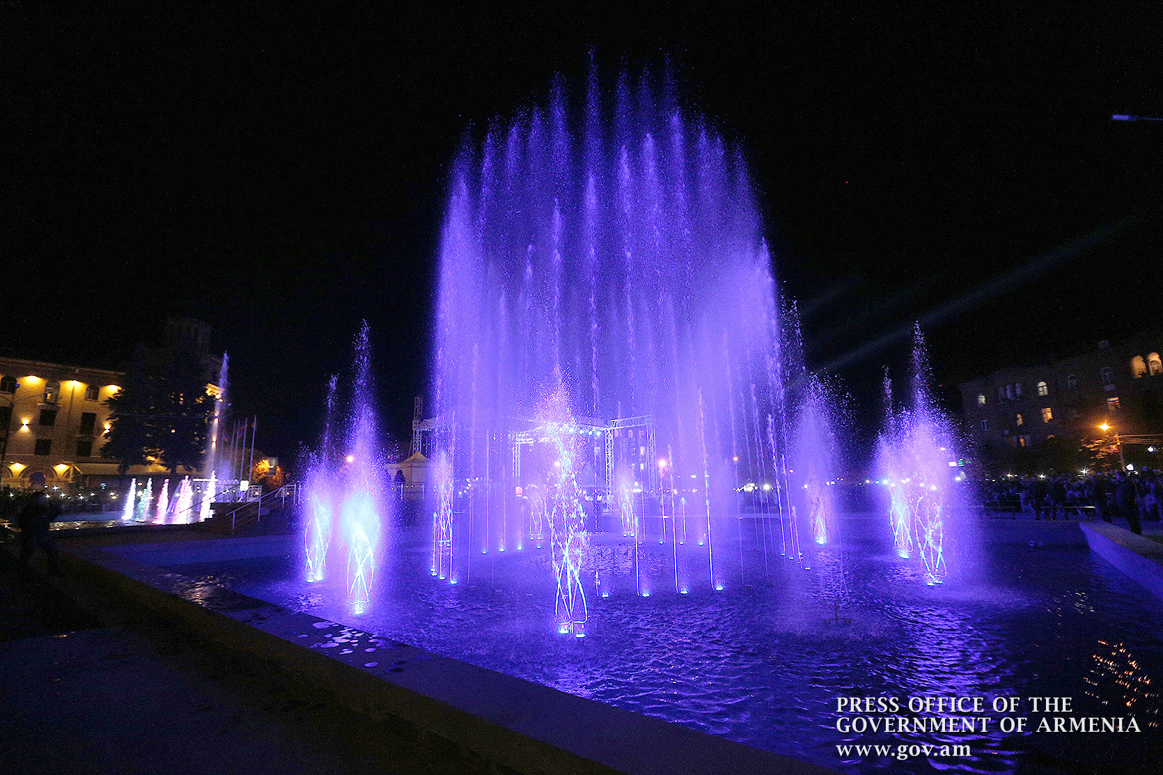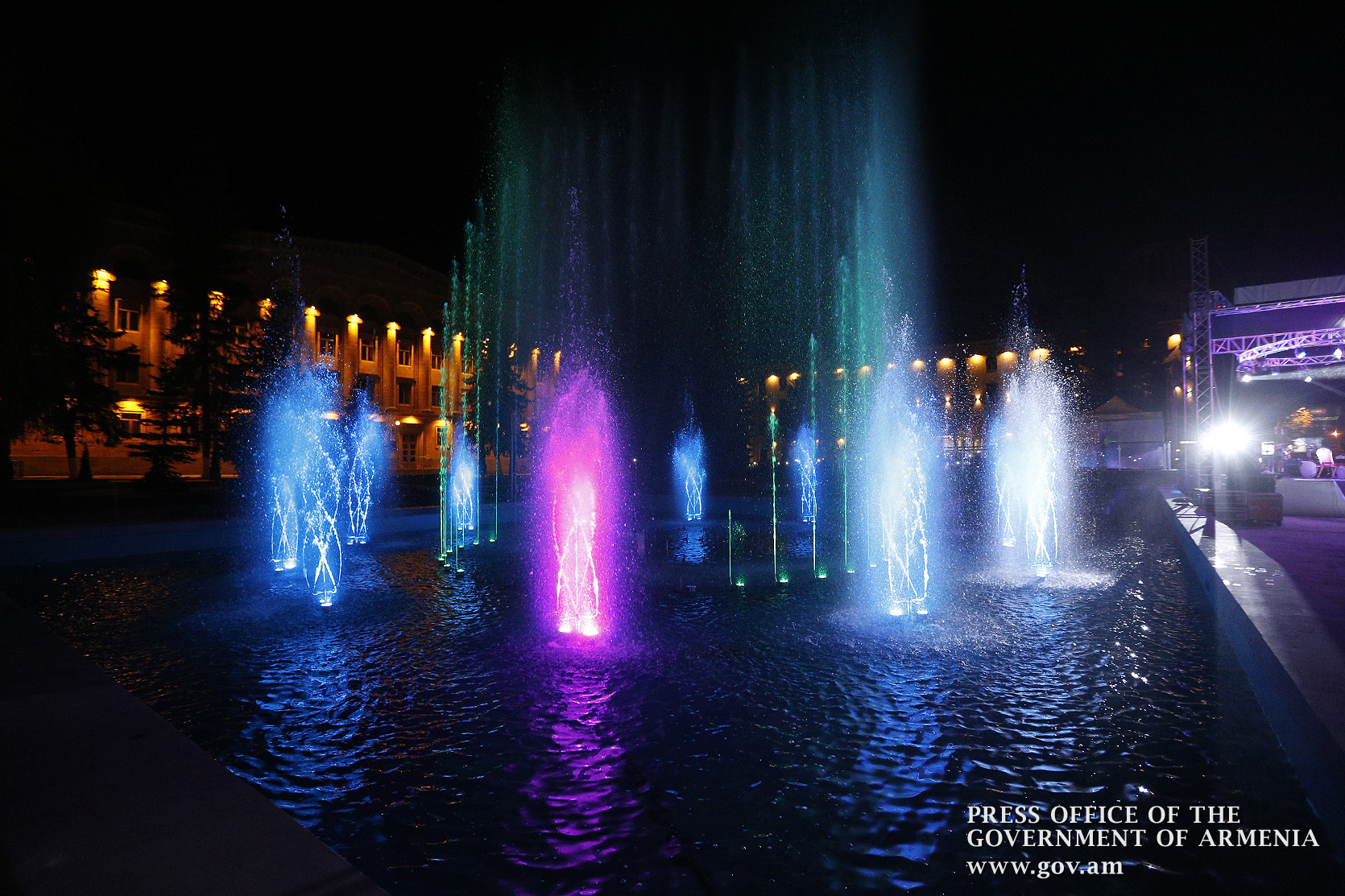Затем на площади “Айк” состоялось торжественное открытие не имеющих аналогов в регионе фонтанов с звуко-световыми эффектами. Благоустройство площади “Айк” и ввод в эксплуатацию фонтанов было осуществлено в рамках субвенционной программы правительства Армении.