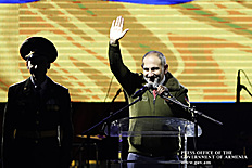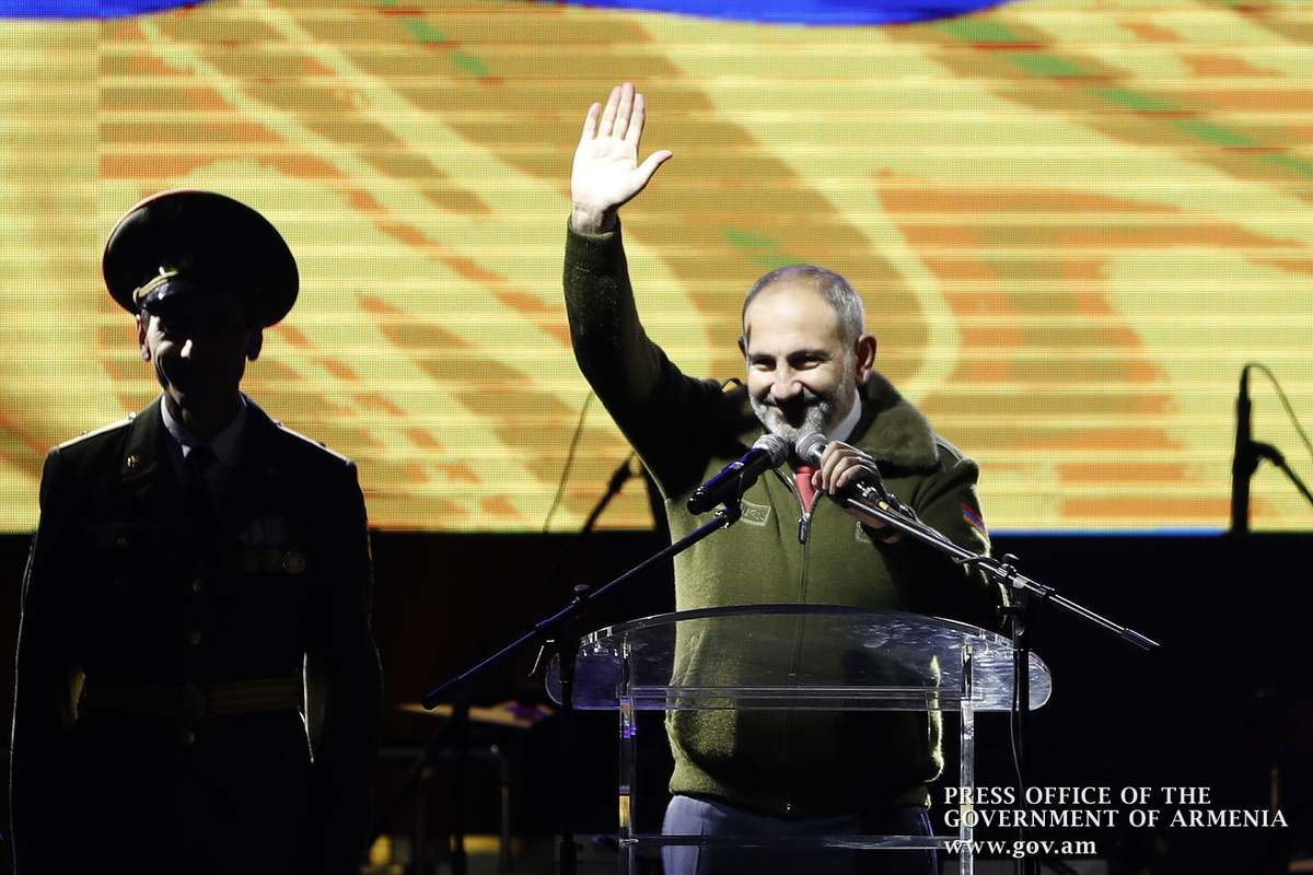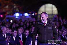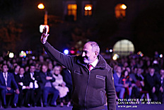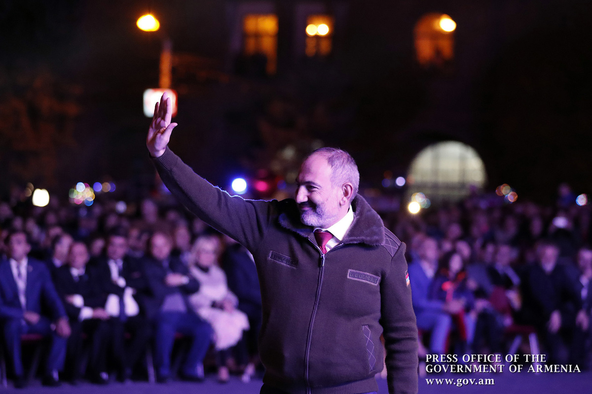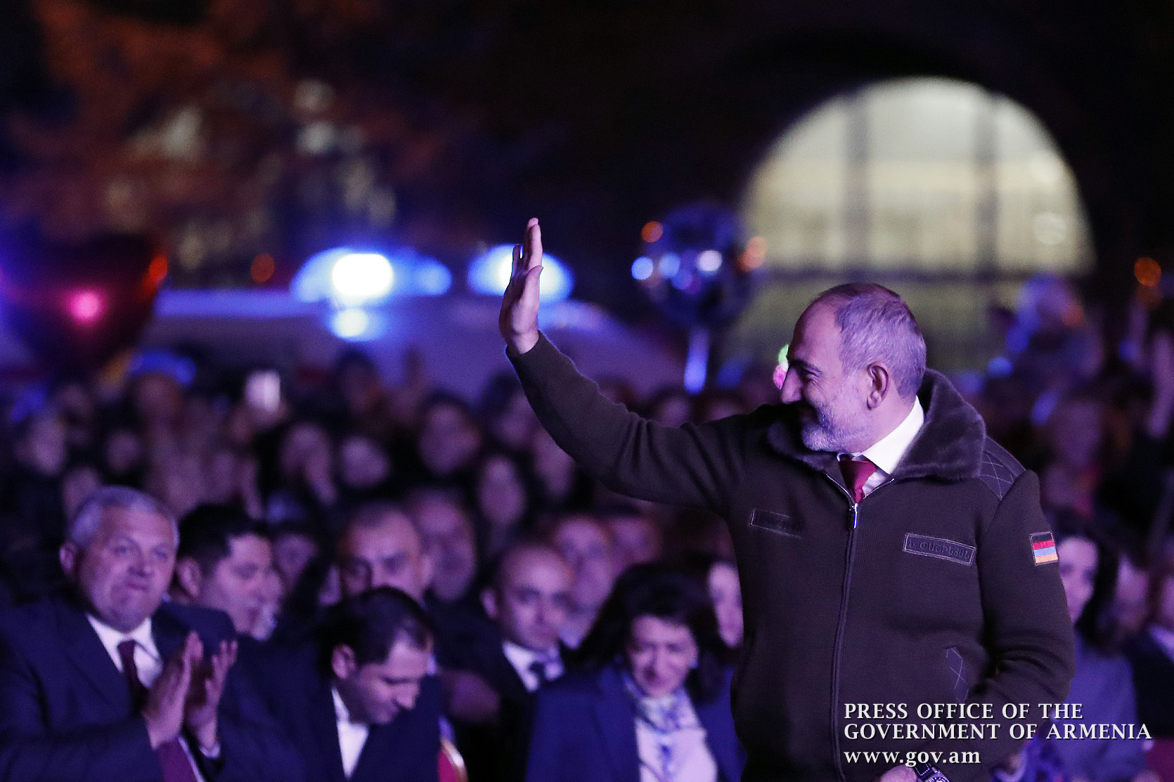 Никол Пашинян и Анна Акопян также присутствовали на концерте по случаю Дня Ванадзора, который завершился фейерверком.