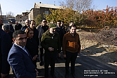 Следующей остановкой премьер-министра была община Нор Ерзнка Котайкской области, где он ознакомился с процессом реализации субвенционных программ по газификации и асфальтированию. Премьер-министру сообщили, что в результате работ полностью будет газифицирован квартал Ерзнка, запуск запланирован на конец этого месяца. Глава правительства прошелся по общине Нор Ерзнка, ознакомился с результатами работ по асфальтированию, посетил квартал Верин Ерзнка, где по софинансированию общины и правительства впервые с 1965 года осуществляется асфальтирование. Было отмечено, что в рамках субвенционной программы в этом году все улицы квартала были заасфальтированы, а асфальтирование дорог было завершено в середине октября. Глава общины также сказал, что эта дорога является единственной дорогой, ведущей в находящейся рядом монастырь Цахкеванк, и имеет также туристическое значение. Во время визита в Нор Ерзнка, увидев металлолом и конструкции старых автомобилей, премьер-министр коснулся вопроса утилизации металлического мусора в республике, обсудил пути решения проблемы с местными жителями и подчеркнул важность совместных усилий правительства, органов местного самоуправления и граждан.