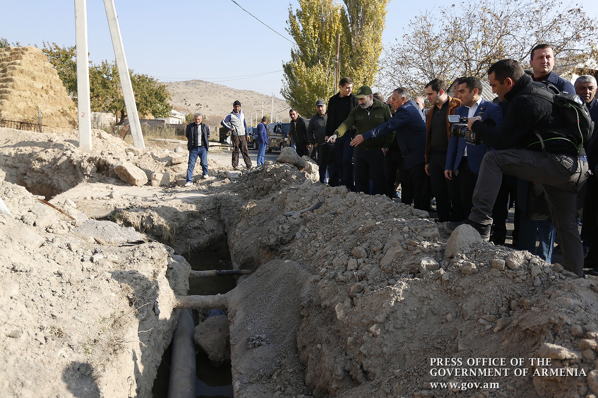 Визит премьер-министра начался с общины Егвард, где первой остановкой был населенный пункт Зовуни. Здесь осуществляется субвенционная программа по строительству водопроводной линии для подачи питьевой воды. Николу Пашиняну был представлен процесс ремонтных работ. Ответственные лица отметили, что строится объездная водопроводная линия протяженностью 1,5 км., которая обеспечит бесперебойное водоснабжение поселения Зовуни. Было отмечено, что в настоящее время в Зовуни есть районы, в которых подача воды осуществляется всего один час в день, и что в результате строительства новой водопроводной линии этот вопрос будет решен. Было отмечено, что проект практически завершен.