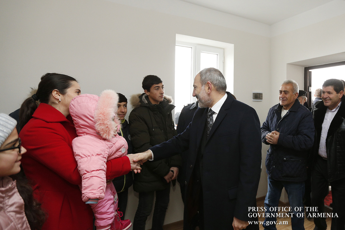 Затем глава правительства отправился в общину Лернанцк и принял участие в церемонии новоселья местных жителей, получивших новые квартиры. В рамках государственной градостроительной программы в зоне бедствия за счет выделенных правительством финансовых средств благотворительной организацией "Домостроительный центр Фулер" построено 8 квартир. Никол Пашинян поздравил жителей Лернанцка с новосельем, пожелал им успехов и прогресса, отметив, что правительство будет последовательным в решении жилищной проблемы в зоне бедствия. Решением правительства стартовало строительство еще 24-х квартир, из которых четыре - в общине Лернанцк.