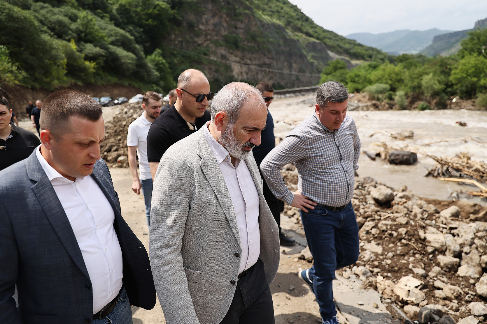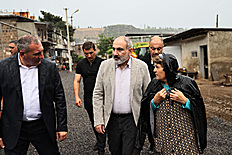 Премьер-министр Никол Пашинян посетил зону бедствия, Лорийскую и Тавушскую области, ознакомился с ходом восстановительных работ в пострадавших от наводнения населенных пунктах.