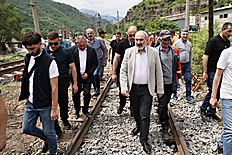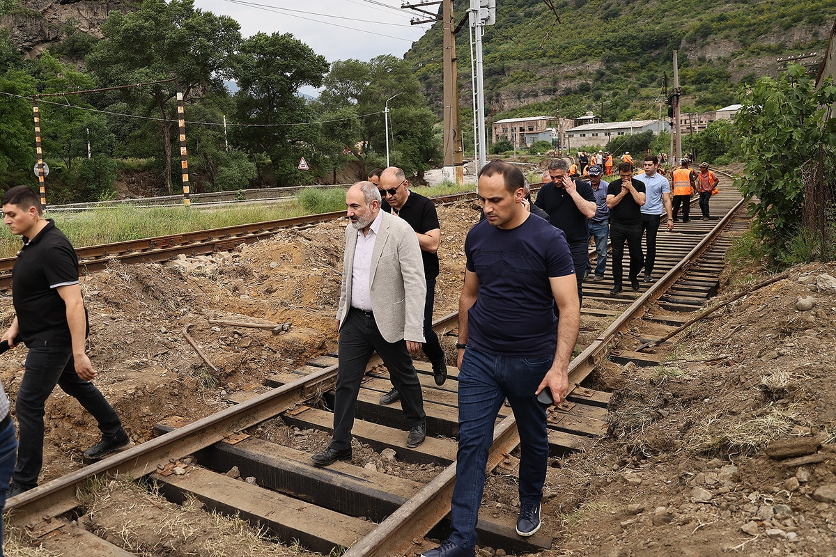 Никол Пашинян посетил населенный пункт Айрум. В результате наводнения здесь был поврежден железнодорожный мост, а также пострадал таможенный терминал компании “Дамуар Групп”.