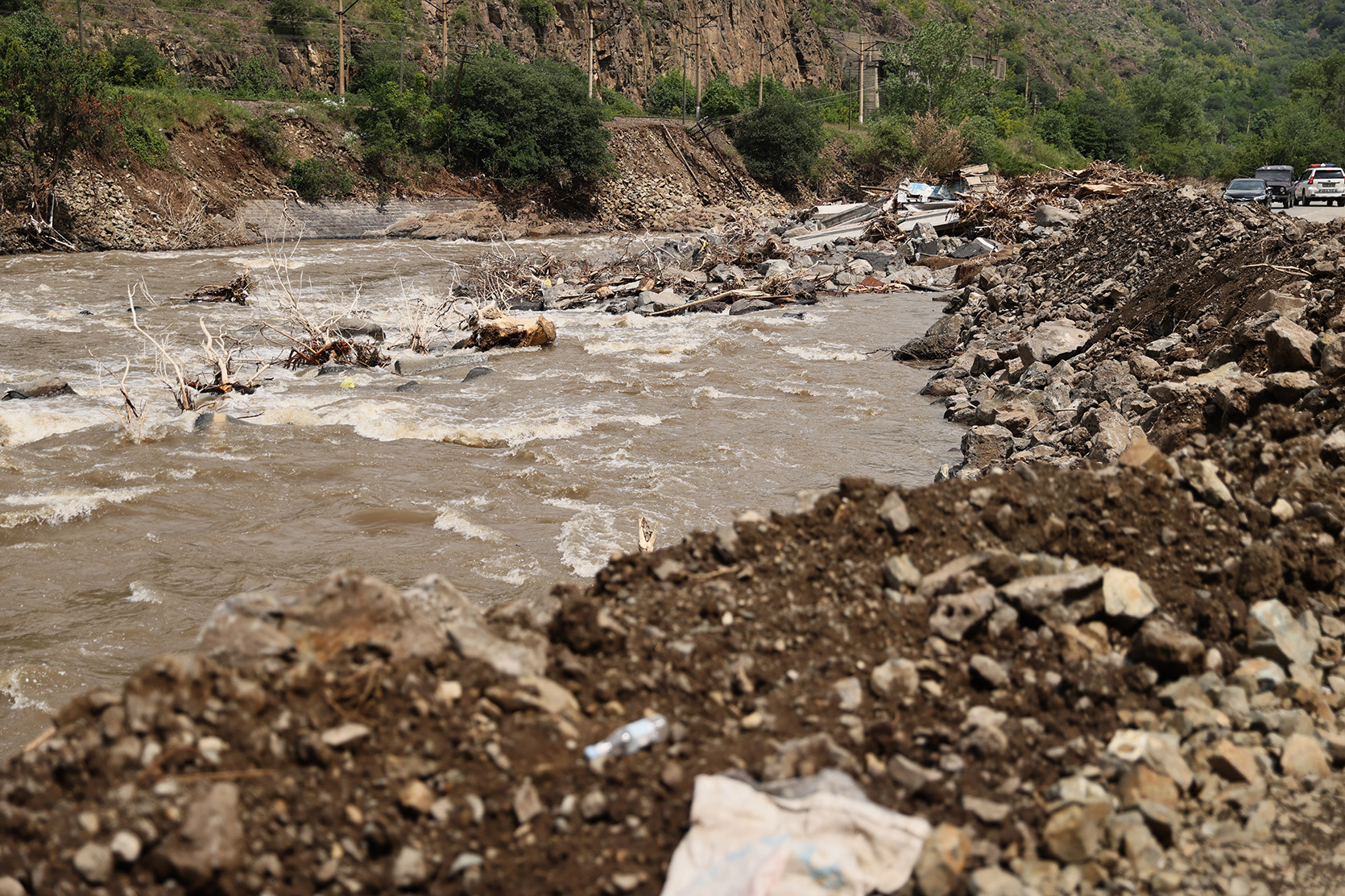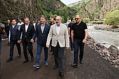 Первая остановка премьер-министра состоялась на 31-м км участка межгосударственной трассы М6 Ванадзор-Алаверди, возле гостиницы “Туфенкян”. Главе правительства был представлен ход работ: было отмечено, что обрушившаяся дорога была засыпана, установлены подпорные стены, в результате чего восстановлено движение транспорта. Также восстановлено движение на участке около села Марц межгосударственной дороги Ванадзор-Алаверди.