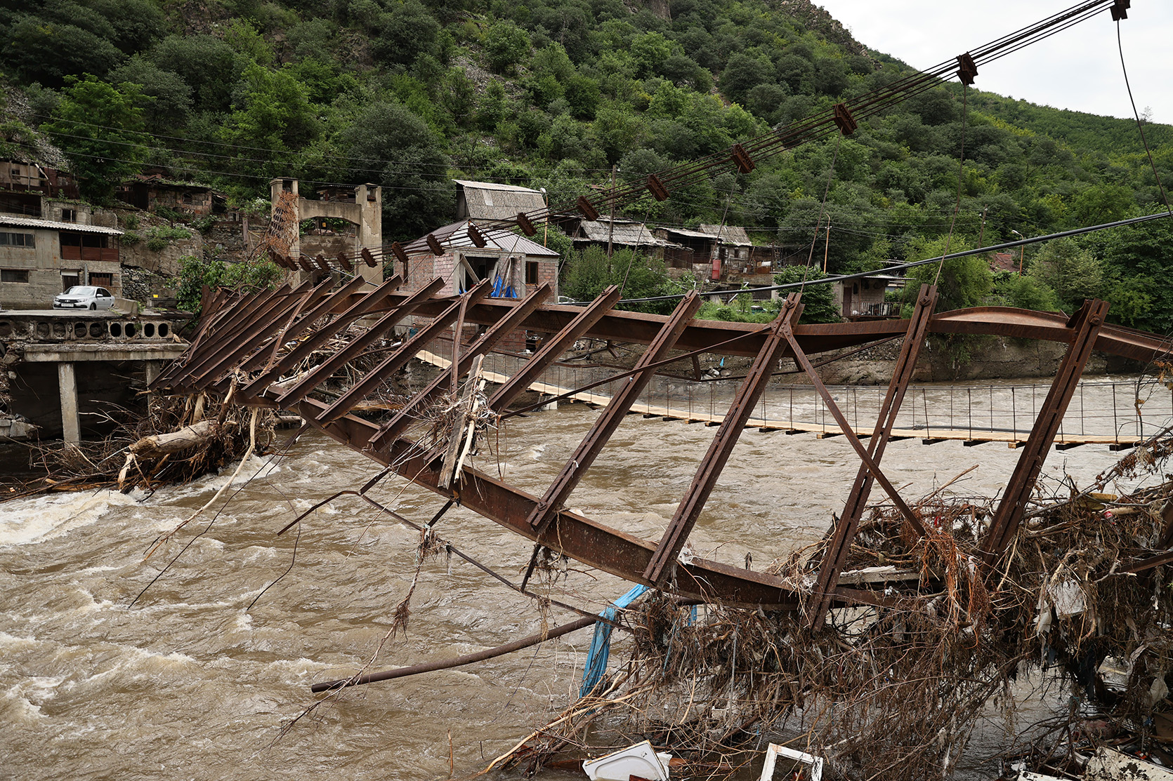 Глава правительства посетил населенный пункт Ахтала, который оказался в изоляции из-за обрушения моста. В настоящее время ведется строительство временного моста. Мост построен из металлоконструкций и предназначен для легковых автомобилей. Этот мост обеспечит связь с 6 населенными пунктами. Была подчеркнута важность оперативного и качественного выполнения работ. Было отмечено, что оперативный штаб правительства обеспечил местных жителей необходимыми продуктами питания и другими предметами первой необходимости. Никол Пашинян посетил также оказавшийся из-за наводнения в изоляции населенный пункт Чочкан, связь которого с другими населенными пунктами восстановлена.
