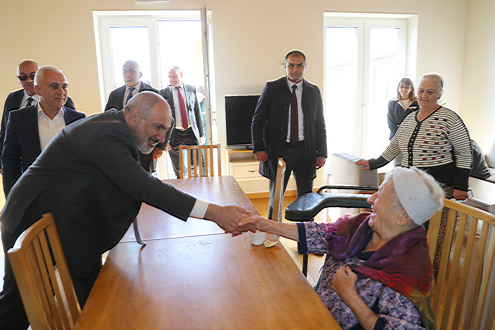 Затем Никол Пашинян посетил созданный благотворительным фондом “Альберт Севинс” центр по уходу за пожилыми людьми, побеседовал с бенефициарами, ознакомился с созданными условиями.