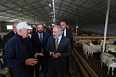 В общине Ахурян премьер-министру были представлены работы, осуществляемые частным сектором в рамках программ “Поддержка развития овцеводства и козоводства в Республике Армения”, “Поддержка лизинга оборудования агропродовольственной сферы в Республике Армения” и “Поддержка лизинга сельскохозяйственной техники в Республике Армения”. Соответственно, частный инвестор получил кредит в размере 30 млн драмов под 0% на строительство животноводческой фермы. В рамках проводимых инвестором работ обрабатывается около 160 га пашни. В рамках программы “Поддержка развития овцеводства и козоводства в Республике Армения” инвестор приобрел 200 голов овец породы французский бланш. В рамках программы “Поддержка лизинга оборудования агропродовольственной сферы в Республике Армения” была приобретена сельскохозяйственная техника. Инвестор поблагодарил премьер-министра за инициирование правительством таких программ и вклад в развитие сельского сектора.