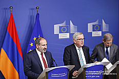 Находящийся с рабочим визитом в Брюсселе премьер-министр Армении Никол Пашинян и председатель Европейской комиссии Жан-Клод Юнкер выступили с заявлениями для СМИ по итогам переговоров.