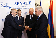 Я рад находиться сегодня в Чешской Республике с официальным визитом. Визит проходит по случаю 30-летия установления дипломатических отношений между Арменией и Чехией. Армения придает большое значение продолжительному развитию и укреплению отношений с Чехией, для чего имеются все предпосылки. Об этом свидетельствуют также взаимные визиты на высоком уровне между нашими странами.