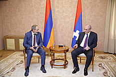 В рамках рабочего визита в Республику Арцах премьер-министр Никол Пашинян встретился с президентом Республики Арцах Бако Саакяном. В ходе встречи обсуждался ряд вопросов, касающихся взаимодействия между Арменией и Арцахом в разных областях.