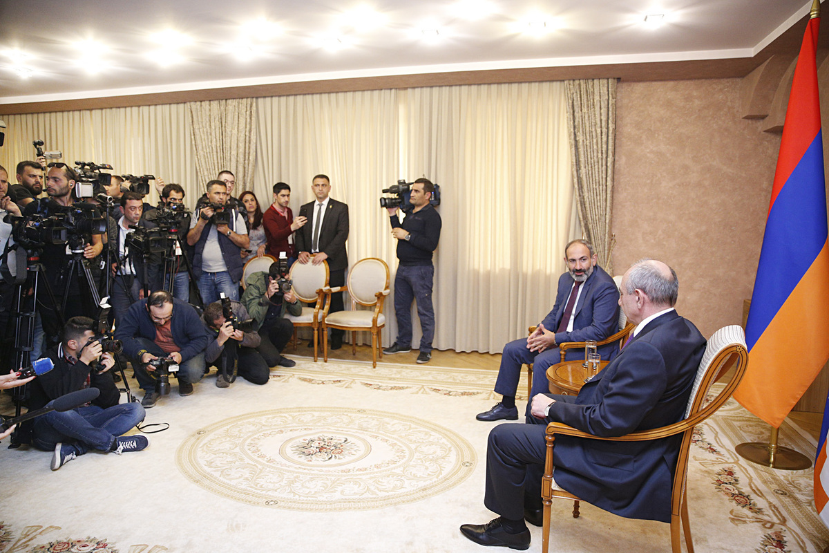 «Благодарю, господин Президент. Считаю важным, что мой первый визит в статусе премьер-министра происходит именно в Республику Арцах, потому что наши отношения с Республикой Арцах приоритетны. Я прибыл сюда с двумя следующими мессиджами. Во-первых, выражаю своё полную и безусловную поддержку Республике Арцах и её президенту. Во-вторых, вчера я в своём выступлении говорил, что мы считаем очень важным продолжение переговорного процесса по карабахской проблеме, который будет учитывать право народа Арцаха на самоопределение, и я заявил, что готов вести переговоры с Президентом Азербайджана в рамках сопредседательства Минской группы ОБСЕ, но также считаю, что этот переговорный формат не может считаться полноценным, поскольку в нём пока не участвует одна из полноценных сторон конфликта – руководство Арцаха. Осмелюсь утверждать, что одной из причин, по которой переговоры по урегулированию вопроса до сих пор не дали желаемых результатов, вероятно, также и в этом. Потому что трудно представить, что в неполноценном, половинчатом формате какие-либо переговоры могут дать результат. Мы также считаем, что нужно приложить усилия, в том числе в направлении использования потенциала Диаспоры, чтобы международное признание Республики Арцах не только продолжилось, но также получило новый размах. Мы верны исключительно мирному урегулированию вопроса и осуждаем какое-либо действие по применению силы или угрозу силой. Нет никаких сомнений, что правительство Армении приложит все возможные усилия для защиты интересов Республики Арцах и её народа, в том числе на международной арене. Но думаю, что интересы Республики Арцах и народа на международной арене наилучшим образом защитят именно власти Арцаха. Следовательно, наши усилия должны быть направлены на скорейшее международное признание Республики Арцах и её руководства», - отметил Никол Пашинян.