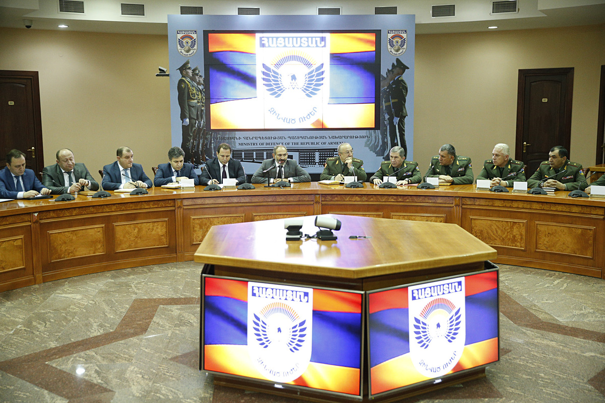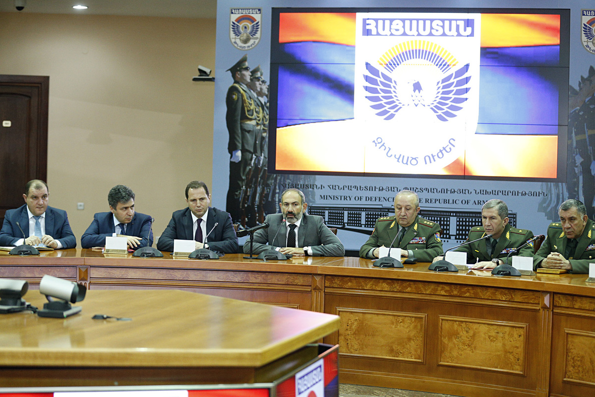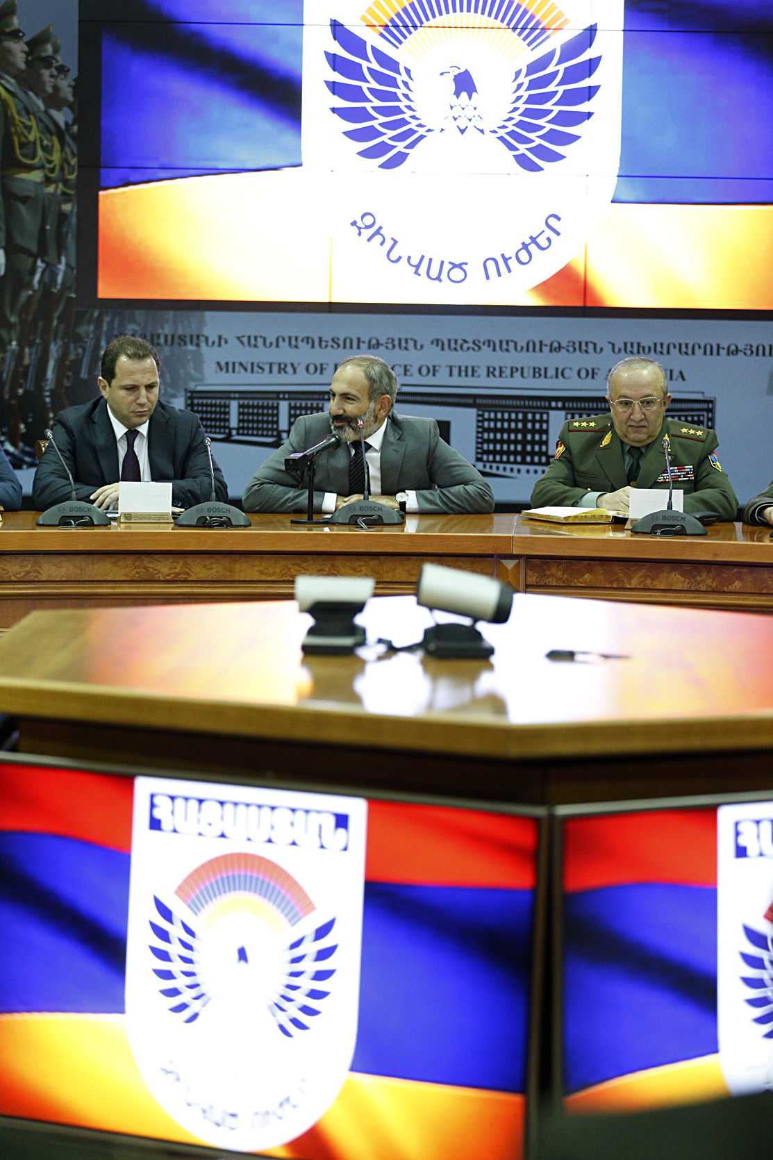 Премьер-министр Никол Пашинян посетил министерство обороны и представил высшему офицерскому составу армии новоназначенного министра Давида Тонояна.