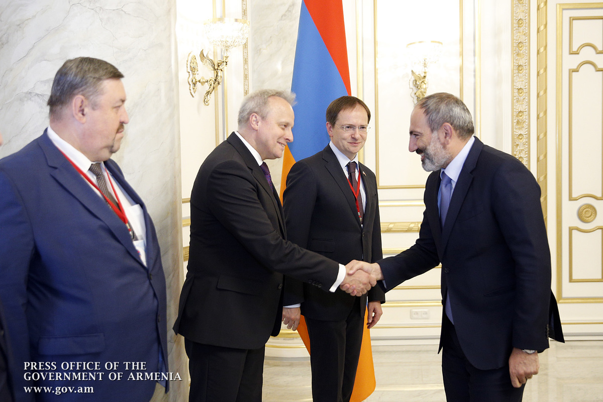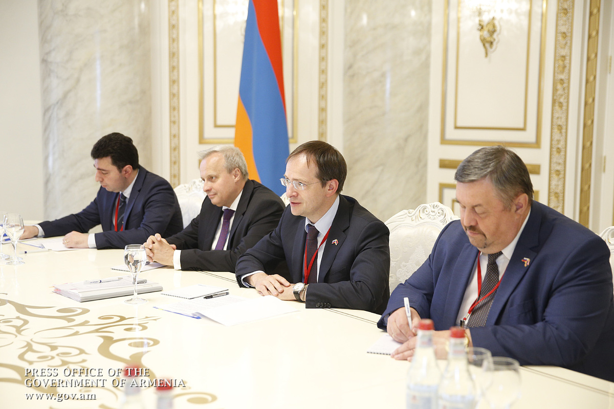Премьер-министр Никол Пашинян принял министра культуры России, руководителя российской делегации на 7-м армяно-российском межрегиональном форуме Владимира Мединского.