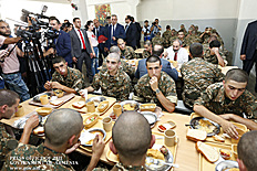 Премьер-министр пообедал с призывниками, в том числе со своим сыном Ашотом Пашиняном, поинтересовался профессиональными и образовательными навыками молодых людей, которых призывают в национальную армию. Некоторые призывники не принимали участия в жеребьевке, принимая во внимание их профессиональные способности. Ответственные лица сообщили, что Ашот Пашинян также не будет участвовать в жеребьевке, поскольку выразил желание служить в одной из воинских частей Арцаха. В беседе с журналистами премьер-министр сказал, что гордится тем, что его сын идет служить в армии. На вопрос о том, какие у него опасения в связи с тем, что Ашот Пашинян выразил желание служить в Арцахе, Никол Пашинян ответил: “Не больше и не меньше, чем беспокойство за других солдат нашей армии. В этом смысле, думаю, исходя из должности, я не имею права заботиться о моем сыне больше, чем о других солдатах”.