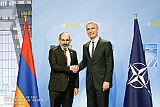 Премьер-министр Никол Пашинян в рамках саммита НАТО 12 июля провел ряд неформальных, рабочих встреч с руководителями разных стран. В частности, премьер-министр встретился с президентом Афганистана Ашрафом Гани, премьер-министром Бельгии Шарлем Мишелем, канцлером Германии Ангелой Меркель, президентом Франции Эммануэлем Макроном, премьер-министром Италии Джузеппе Конте, премьер-министром Канады Джастином Трюдо, президентом Литвы Далей Грибаускайте, премьер-министром Греции Алексисом Ципрасом, президентом Украины Петром Порошенко, премьер-министром Испании Педро Санчесом, премьер-министром Македонии Зораном Заевым, президентом Словакии Андреем Киской и генеральным секретарем НАТО Йенсом Столтенбергом.